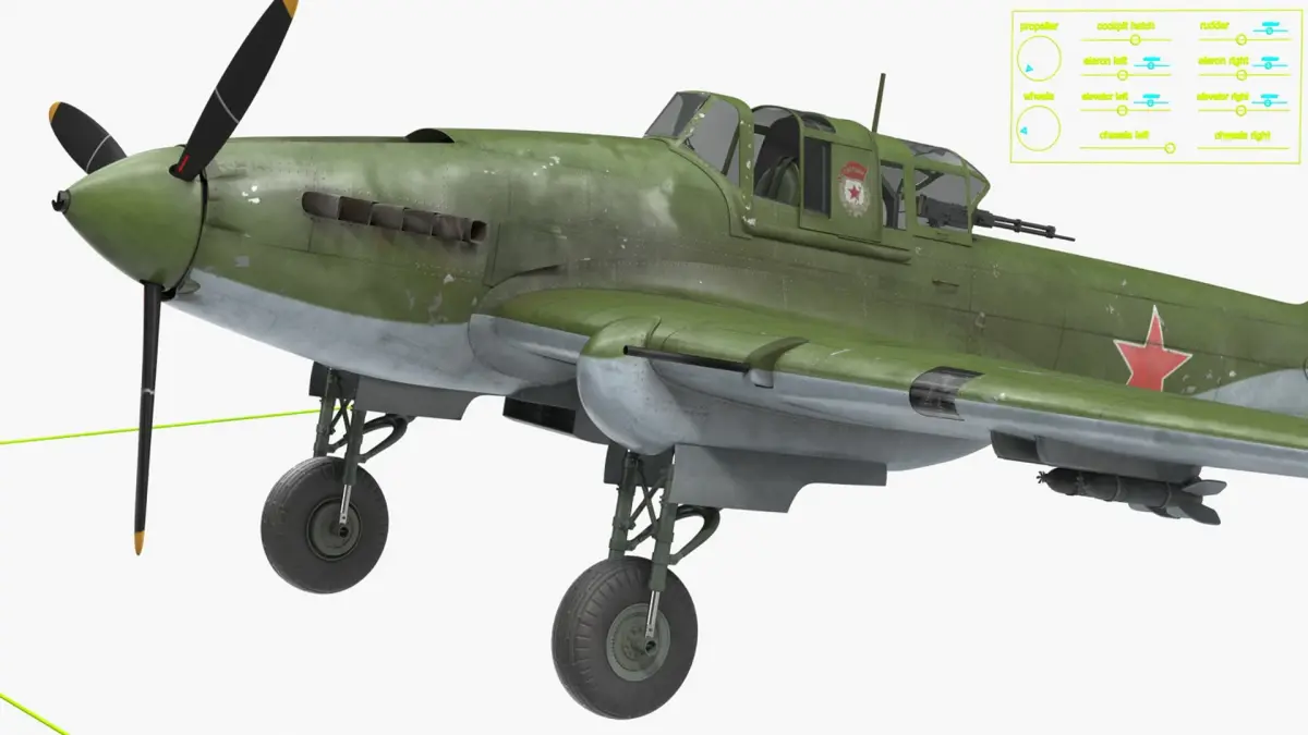 Ilyushin Il-2 Sturmovik Aircraft Rigged for Cinema 4D is a 3d model of a Soviet ground-attack aircraft widely used during World War II.