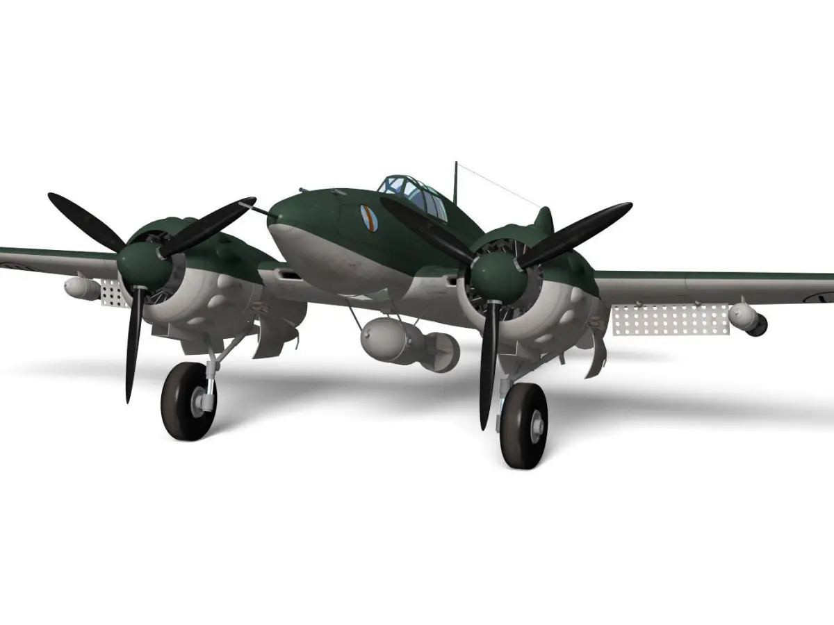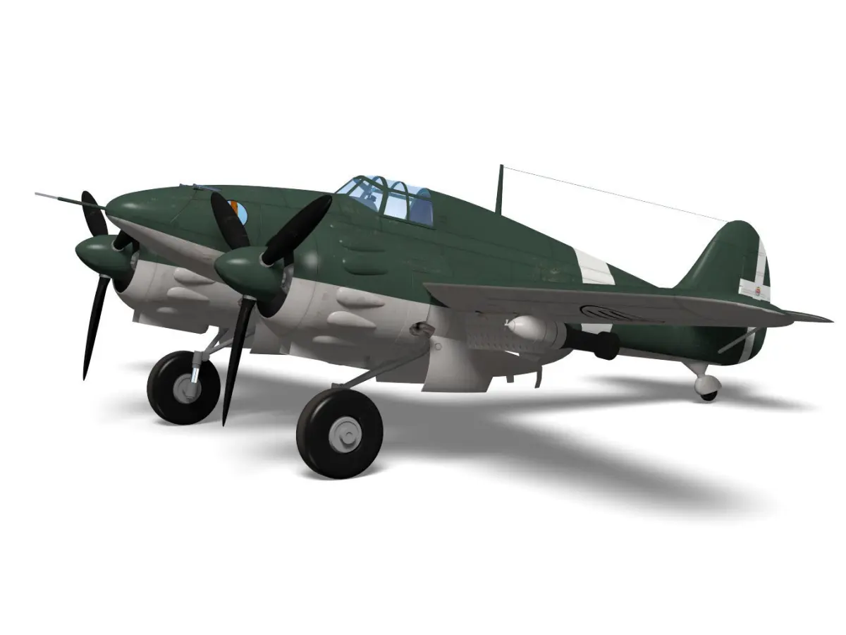 This is a twin-engine fighter that was operated in Italy during WW2.There may be some research errors due to lack of materials.The modeling of the inside of the cockpit is simple.The model's landing gear is divided into flight and landing state parts.