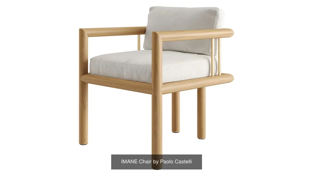 The IMANE sofas and armchair are characterised by a linear structure in brushed solid Iroko wood stained with natural oil, with a refined and essential image.