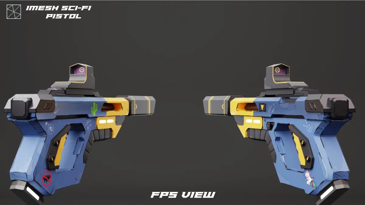 The IMESH Sci-Fi Pistol is a high-quality, game-ready 3D model designed for use in various engines and software, ideal for futuristic or cyberpunk projects. The asset is optimized for performance in real-time applications and features a customizable reflex sight system specifically designed for Unity (URP/HDRP), where users can easily modify sight type, color, and glass.