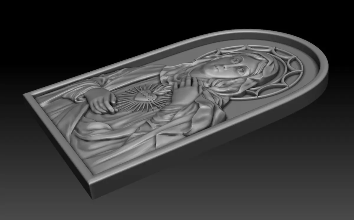 Virgin Mary Mother of God 3d relief for cnc-sistems and 3d printing. Can be used in the production of souvenirs, furniture, jewelry. Files in stl format, for import to artcam, rhinoceros, 3ds max, etc. You can scale the model to any size you need.