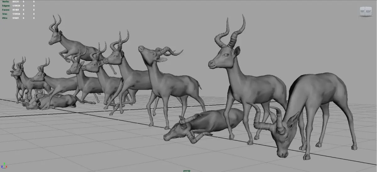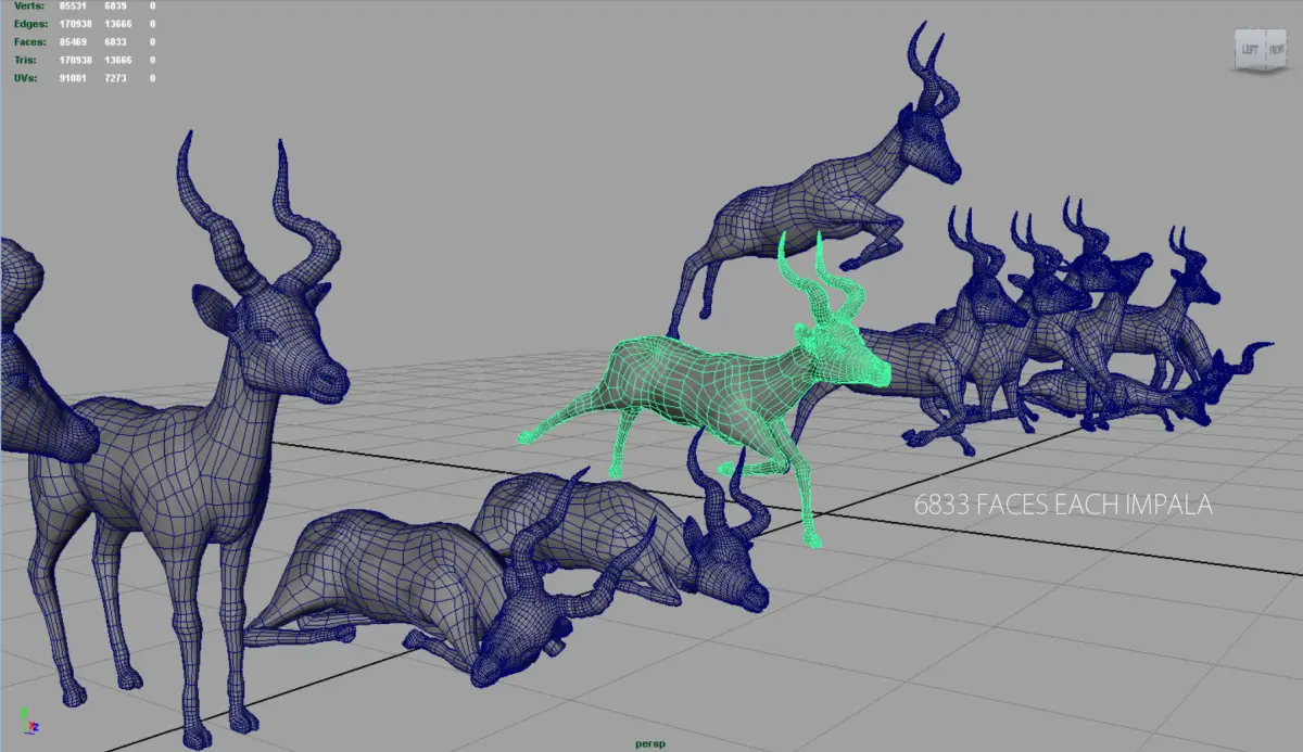 Low Poly model( 6833 faces) Each Impala (85469 faces) total scene