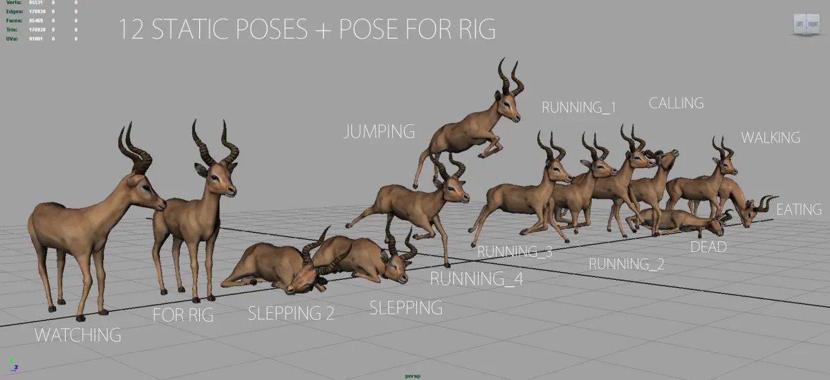 3D HD Model of IMPALA POSES(x12 Static poses +1 pose for RIG)