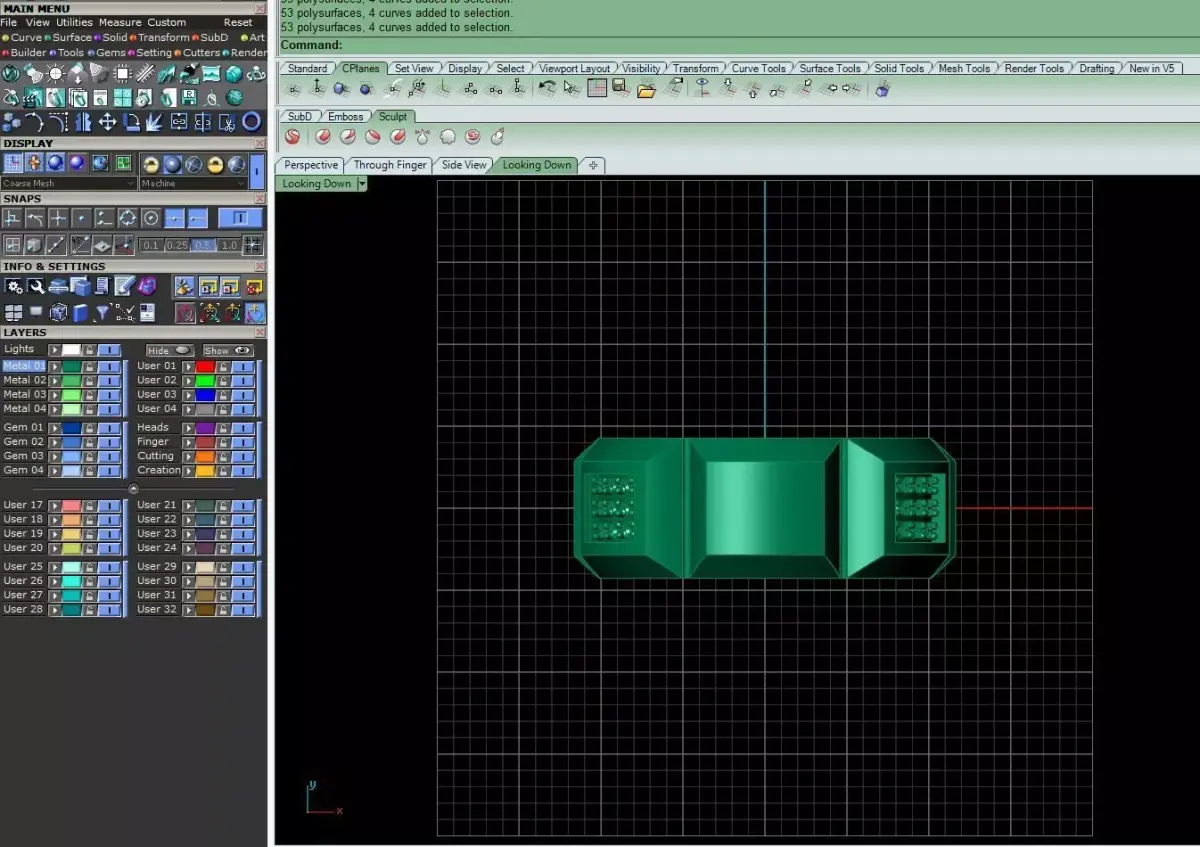 This bold gold ring features a strong geometric structure with a square central panel framed by clean, angular surfaces.The recessed stone-set section is precisely integrated into the design, creating a refined contrast between polished planes and detailed texture.The ring is engineered with optimal wall thickness, balanced proportions, and secure settings to ensure reliability during casting, stone setting, and finishing processes.All production and manufacturing tests have been successfully completed, and the model is fully optimized, error-free, and ready for professional jewelry production.We appreciate your trust in a design developed with precision, durability, and manufacturing efficiency in mind.