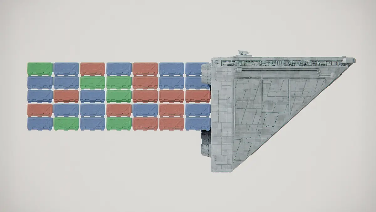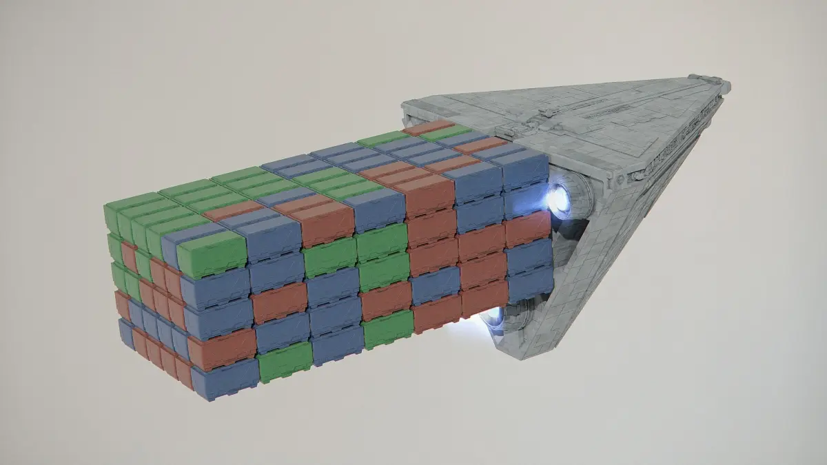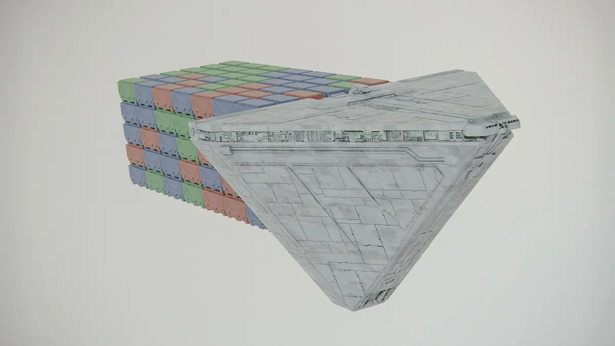Class four container transports, also called a class four freighter, Imperial Class 4 Cargo Ship or more simply as an Imperial cargo ship, were tetrahedral, hyperspace-capable, bulk freighters built by Kuat Drive Yards and used by the Galactic Empire to haul large numbers of crates and containers across the galaxy.