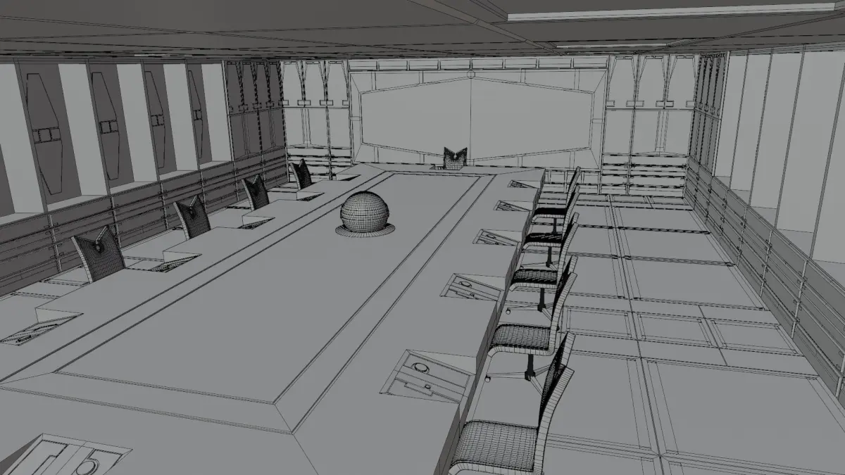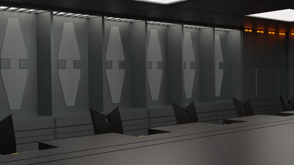 A conference room for Imperial High Command to discuss highly sensitive information, secret projects, or sector management. Features 12 different chairs for different members of Imperial High Command, a hologlobe for external communications, and a large holoscreen for presentations, video communication, or tactical planning.