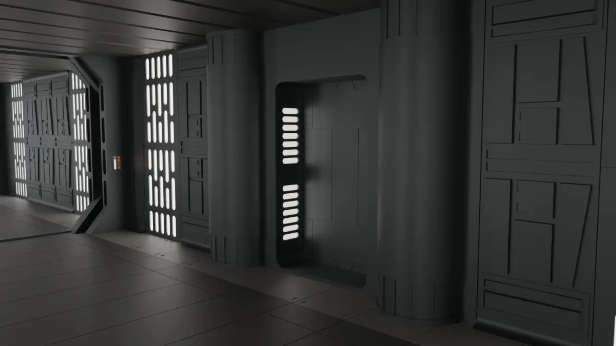 This pack includes a total of 10 different pieces to recreate Imperial Hallways. The sections are designed to be modular for you to create any setup you wish. These include: Elevator Corridor, 1 Sided Door Corridor (Solid), 2 Sided Door (Solid), Standard Corridor, Doorway (Solid), Doorway (animation ready, move 3m to close), Intersect, Corner, 3-Way intersection, and 4-Way Intersection.