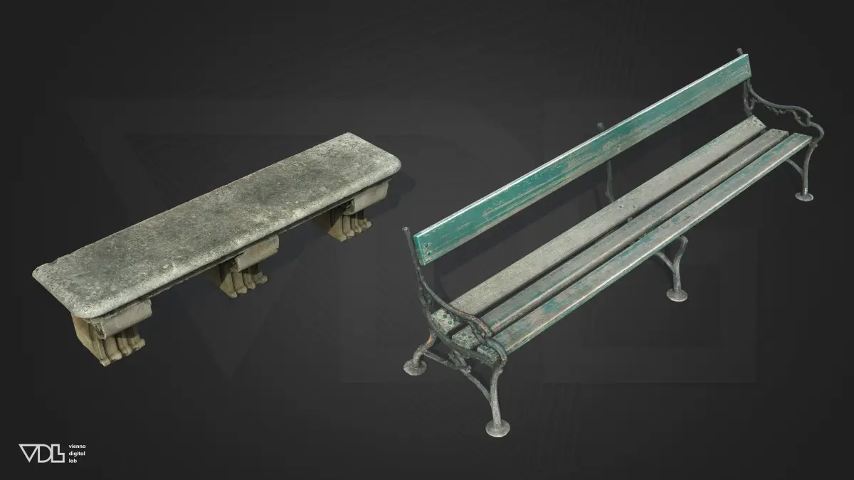 These model benches made from wood and stone are original, hyper-realistic 3D scans from the Austrian Imperial Palace garden in Vienna, Austrias most prestigious cultural heritage sites and a central axis of influence on European history during the Habsburger Monarchy stretching from the late Middle Ages until the early 20th century. The traces of time are inimitably edged into these models, telling tales of Emperors and Empresses that forged entire eras of the countries rich history. As an original, real-life asset, it delivers a high level of character, detail and distinctiveness.