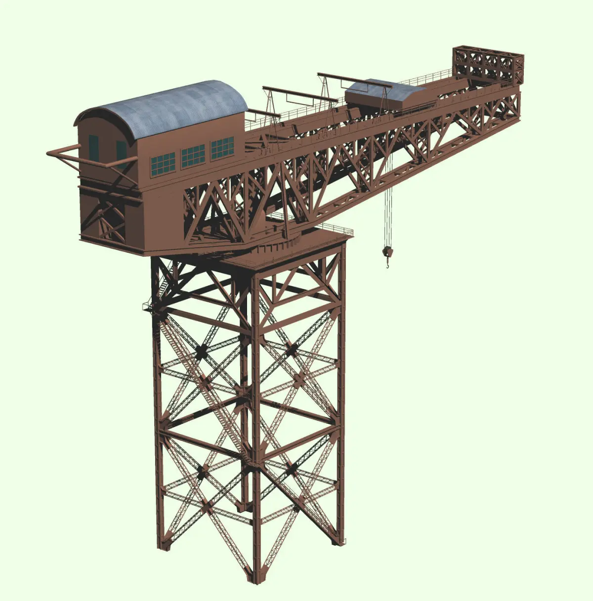 帝国海軍の150トン起重機(クレーン)。 明治時代に日本輸入され、時代を渡り現在でも使用されている造船所の大型クレーンです。 ドライドックセットと併せて使用する事をお勧めします。It is not a stl file for 3D printing.