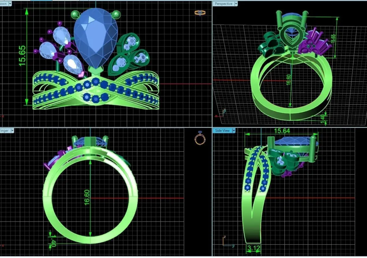 jewelry 3D modeling, creative design, cam cad, rapid prototyping, rendering, animation original classic evening ring stylish trendy elegant graceful diamond gold