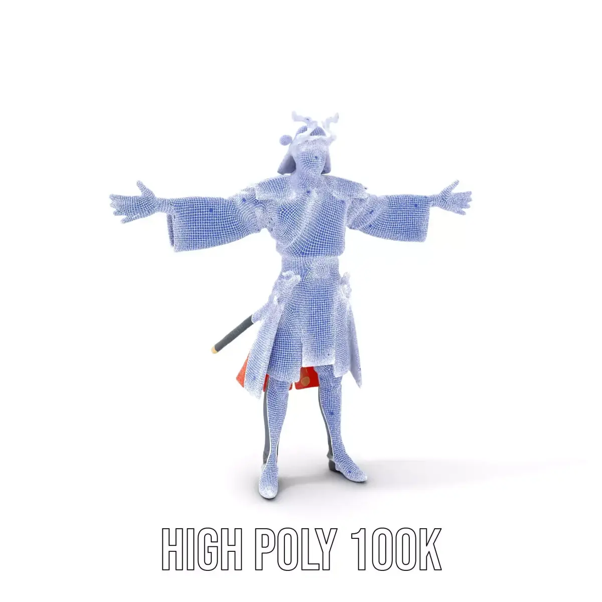 This meticulously crafted Imperial Samurai Armor model pack is a stunning representation of traditional Japanese warrior attire, ideal for historical visualizations, games, and cinematic use. Each model has 3 levels of detail: low-poly (1000 triangles for mobile), middle-poly (10,000 triangles for environment), and high-poly (100,000 triangles), which allows for the use of this model in production rendering such as 3ds Max, Maya, Cinema4D, Blender, Vray/Corona/Cycles, and all others, game engines (Unity and Unreal compatible), and interactive presentations, providing a choice of detail based on the LOD system principle. The model's textures are PBR, Diffuse, NormalMap, and reflection/roughness/metallic, suitable for any modern rendering engine. All models are accurately unwrapped with no overlapping UVs. All textures are 4096x4096 in size. Please like and leave a comment if you enjoy this model!