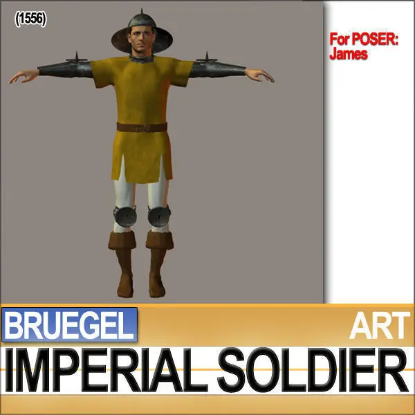 PROPS SET for POSER-DAZ James-Simon-Michael4 STANDARD CHARACTERS. CHARACTERS NOT INCLUDED. [DAZ is a free Software].____________________________________________Imperial Soldier by the famous painter Pieter Bruegel [B&W print 1556-1557]. All 3D models ready for POSER James and Simon G2 and free DAZ Michael 4. Faithful accurate Reconstruction. C4D, 3DS, OBJ, POSER, DAZ, VUE6-7-8-9-10!______________________________________________Real World Scale Model [SmartCgArt Real World System]. Quads [C4D; OBJ; POSER-DAZ] & Tris [VUE;3DS].