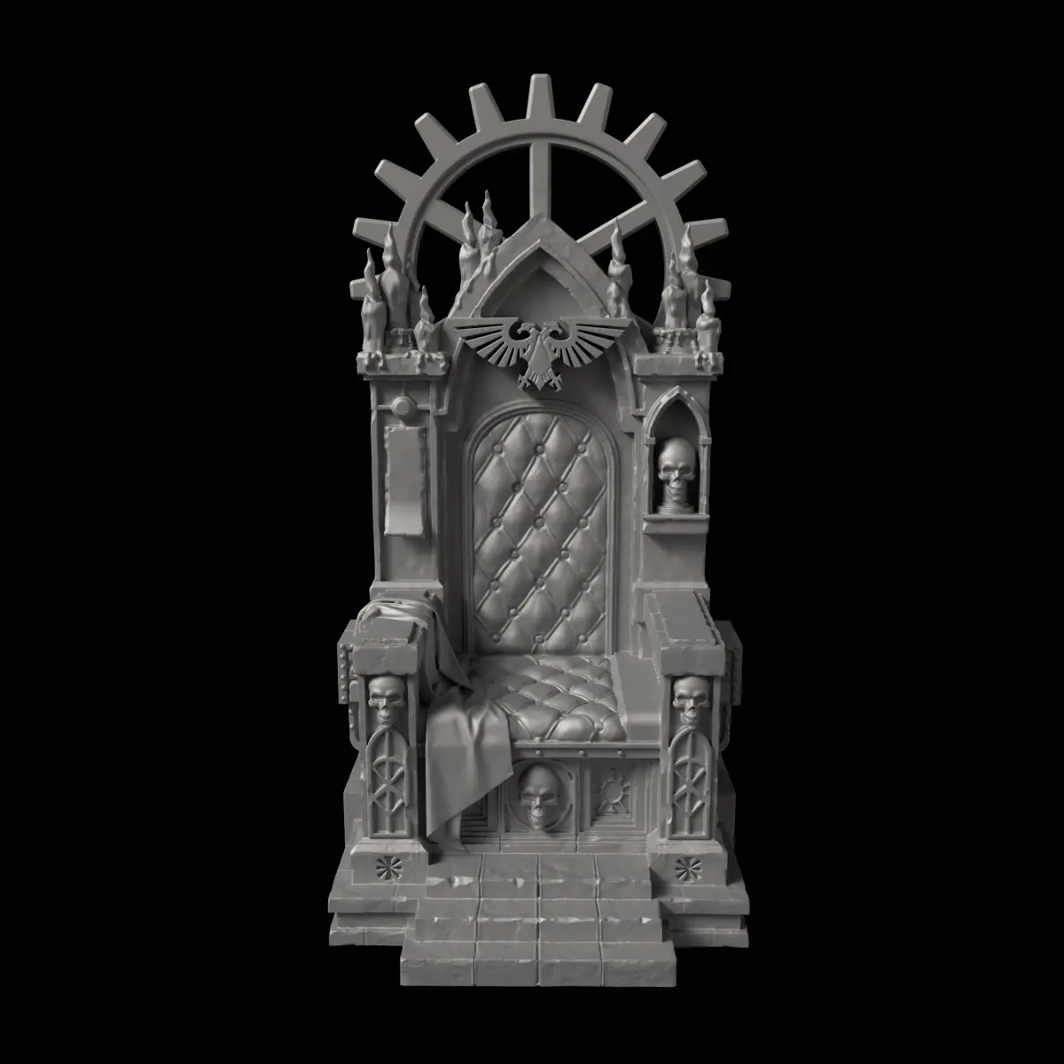 Immerse yourself in the grim darkness of the far future with this highly detailed Imperial Throne miniature. This model is perfect for dioramas, narrative campaigns, or as a striking display piece for your tabletop or shelf.