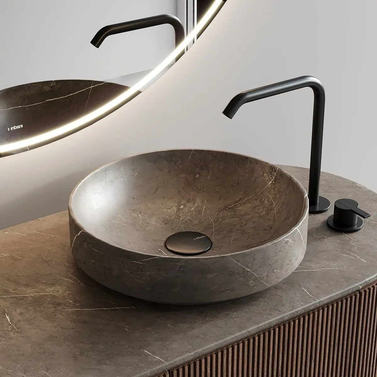 Washbasin:Collection - ArcType - Countertop round single washbasinMaterials - MarbleDimensions:Width - 400mmDepth - 400mmHeight - 100mm