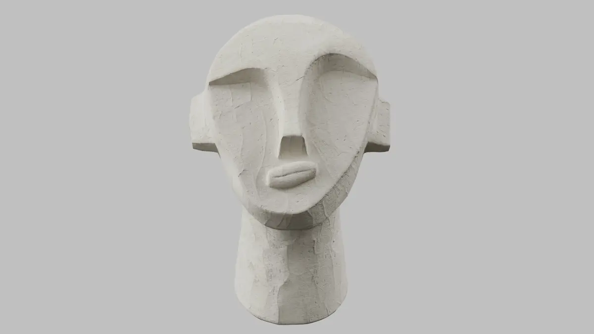 Bring a touch of tribal artistry and contemporary elegance to your interior visualizations with this striking 3D model of a head sculpture in the style of Inda Deco from Bloomingville. This piece captures the essence of abstract tribal art with its elongated features, textured surface, and minimalist aesthetic. The model boasts ultra-high resolution 8K textures that realistically portray the subtle variations in texture and color, making it a visually captivating and versatile addition to any virtual environment.