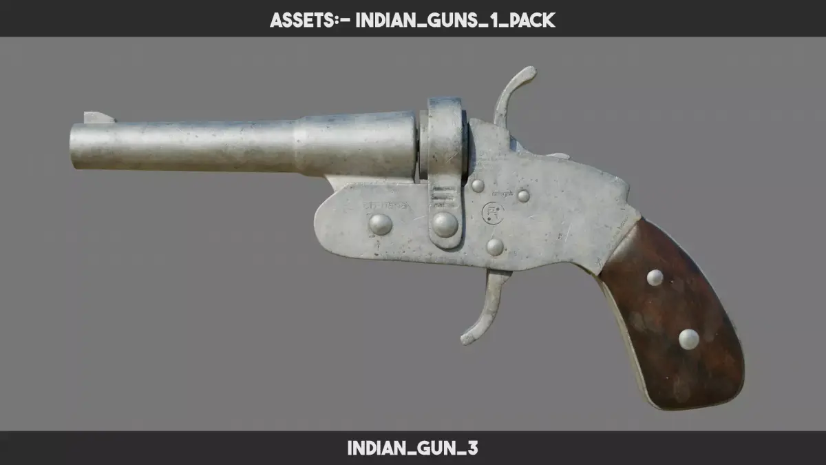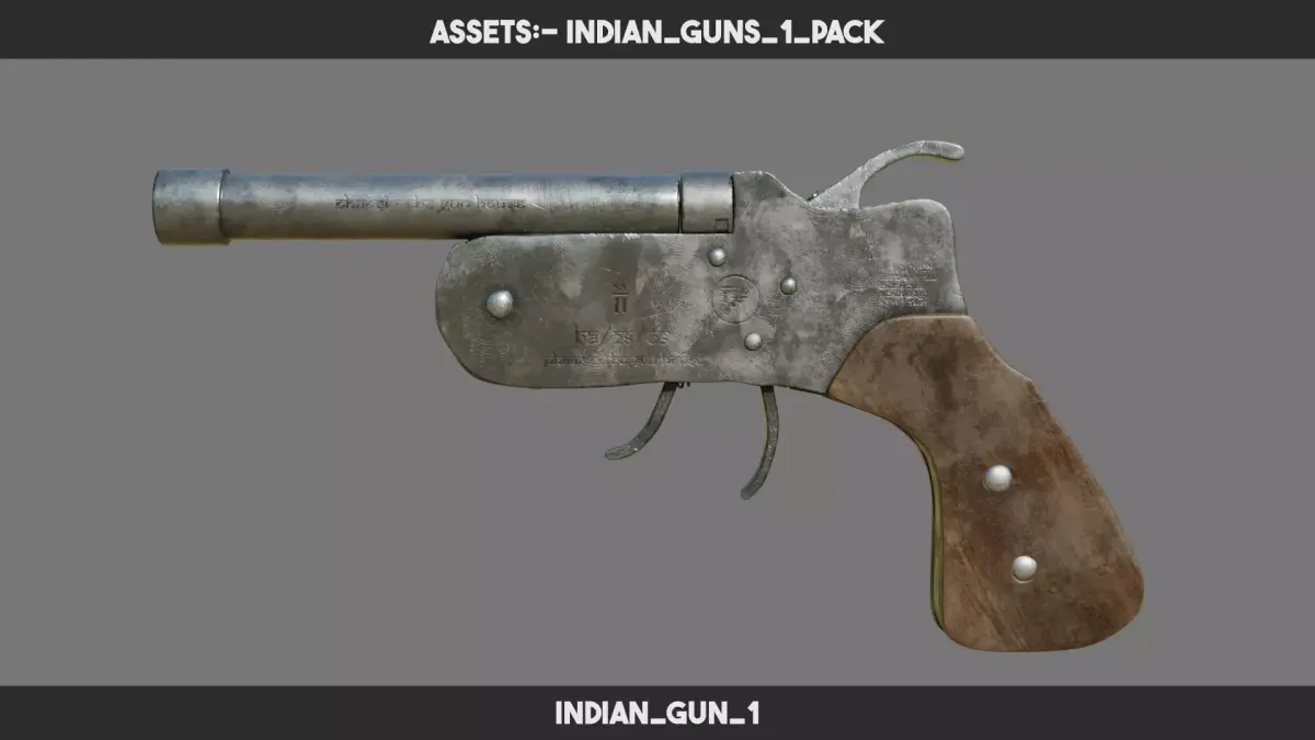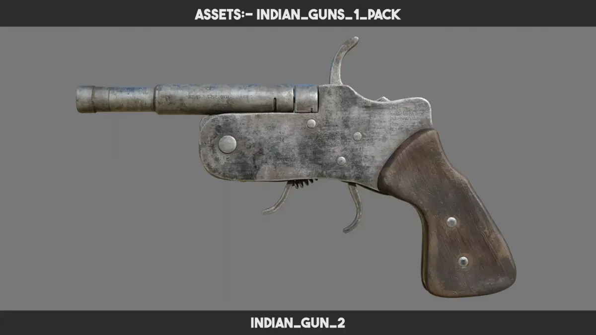 DESCRIPTION:A stylized 3D pack of 7 Indian guns based on Desi Katta and gangland-style weapons. Designed for urban environments, indie crime games, and animation shorts. All props are optimized, PBR-ready, and include 2K UDIM textures.CONTENT:
