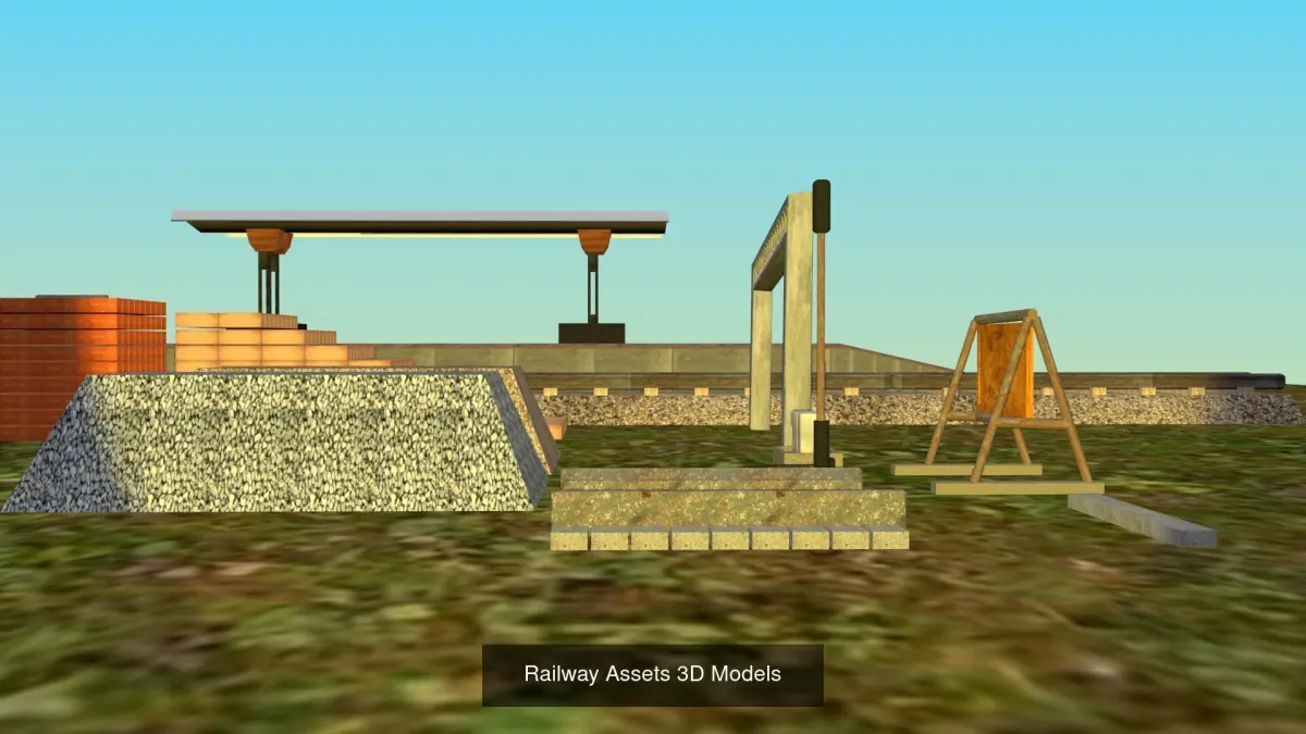 Each model is designed with high levels of detail, offering realistic textures and precise accuracy, making them perfect for use in various projects including animations, games, simulations, and virtual tours. The collection also includes a variety of essential railway assets such as stations, tracks, signals, and carriages, allowing you to create fully immersive railway environments.