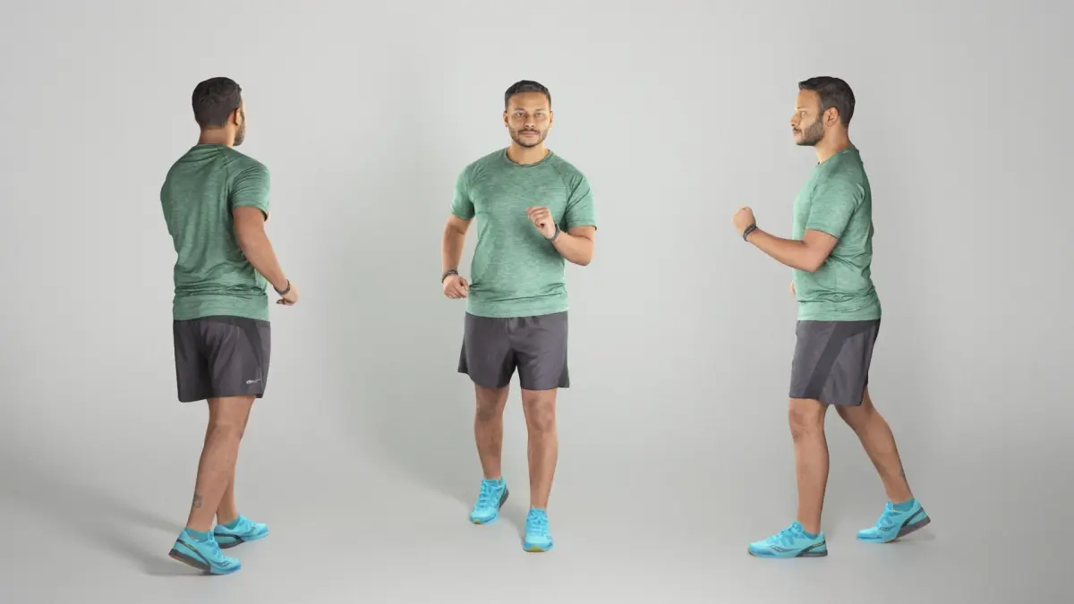 This is a true human size and detailed model of a sporty handsome young man of Indian appearance. The model is captured in casual pose to be perfectly matching for variety of architectural visualizations, e.g. gym, park, locker room, weight room, beach, VR/AR content, etc.