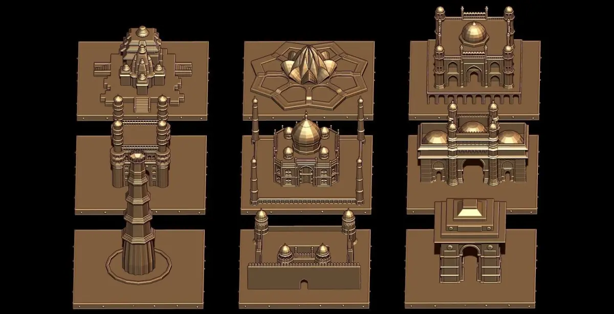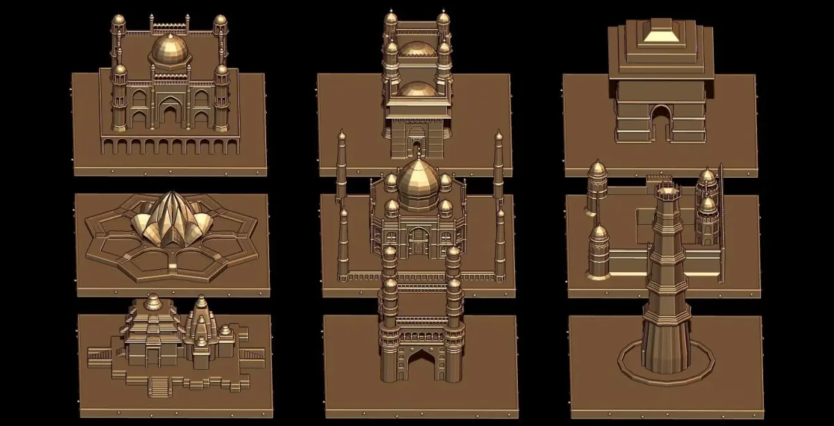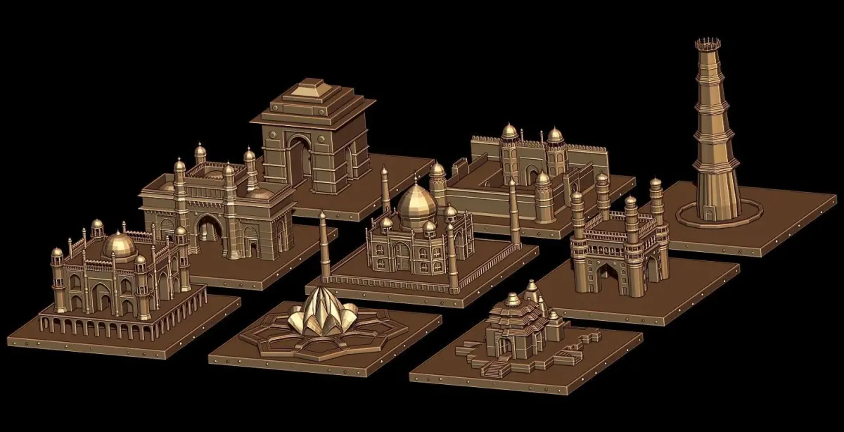 9 Items Pack Low Poly Indian Monuments Low-poly Landmarks 3D Asset