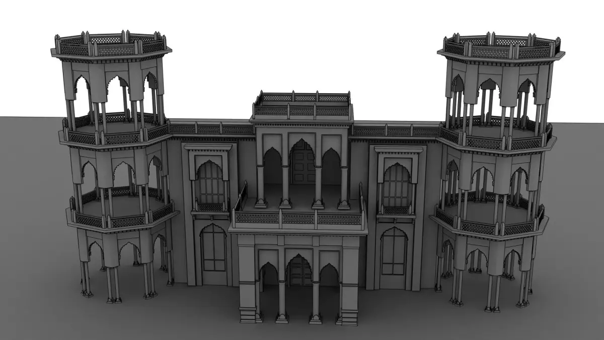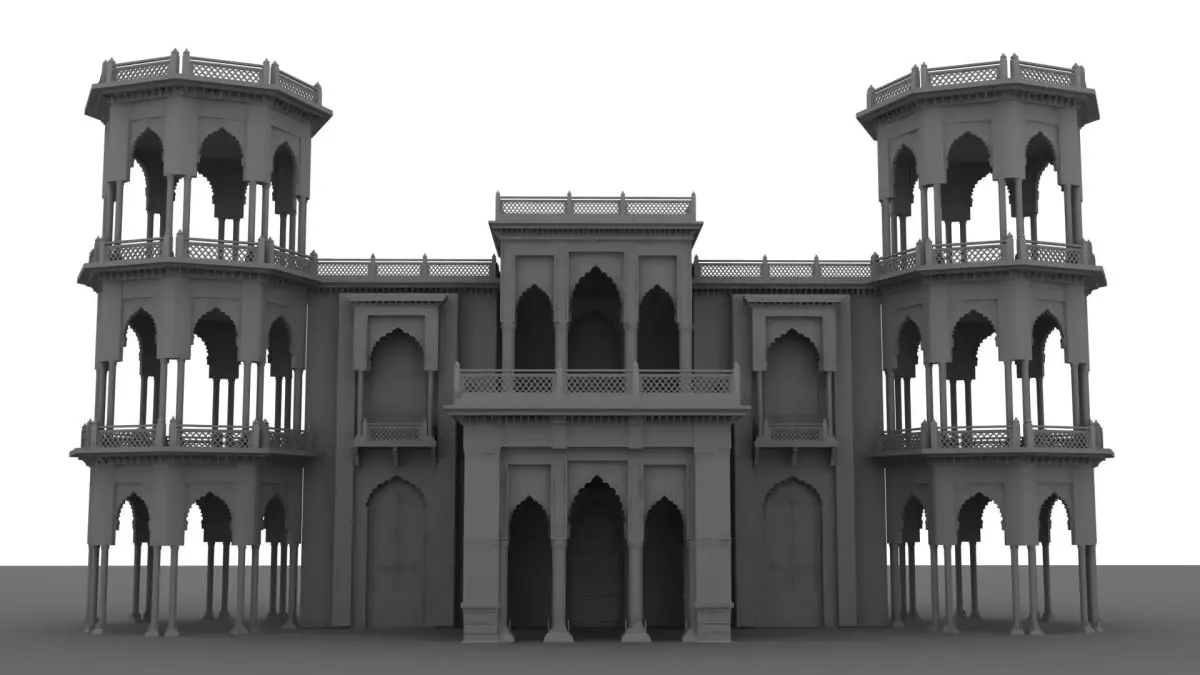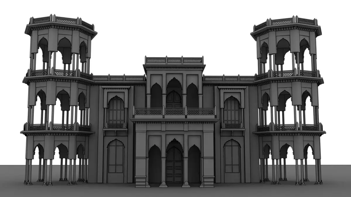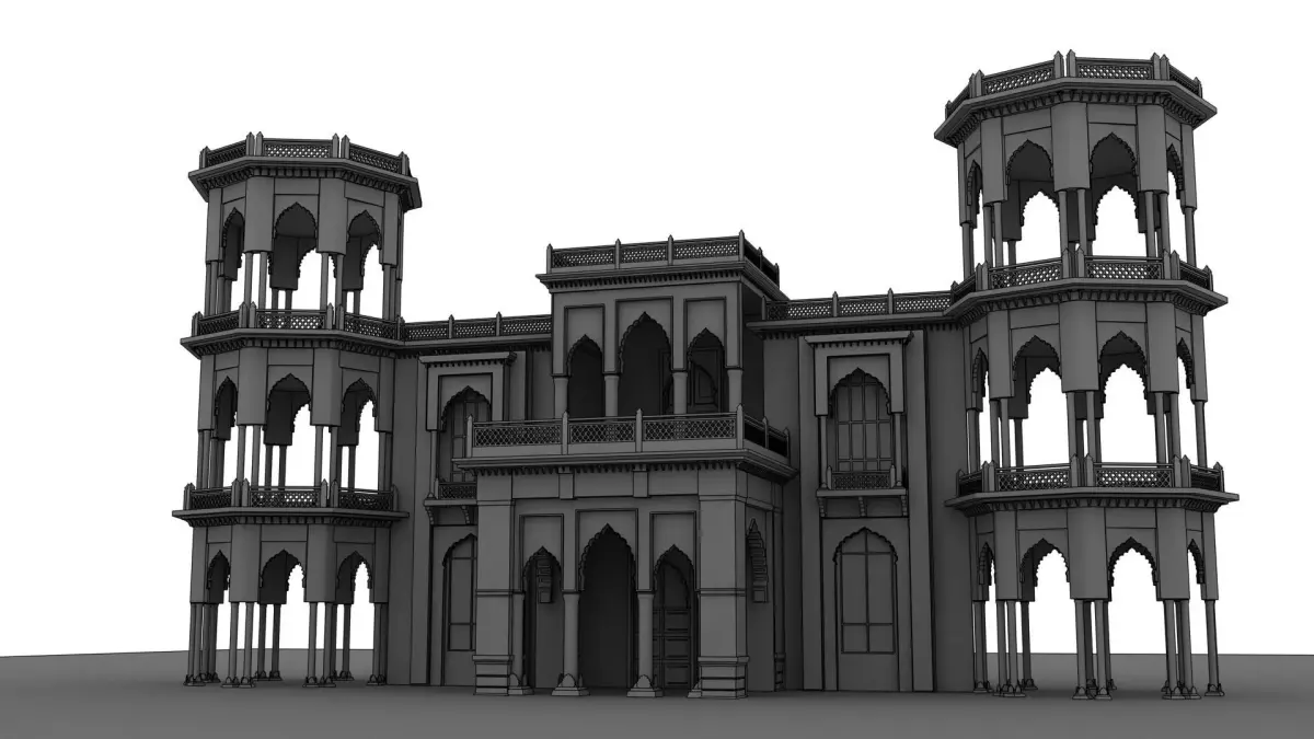 Indian palaces often feature large domes, ornate arches, carved pillars, and decorative jali (lattice) work, which add elegance and visual depth to the structure. The architecture is usually a blend of Rajput, Mughal, and traditional Indian styles, showcasing symmetry, balance, and elaborate ornamentation. Beautiful courtyards, grand entrances, and expansive halls are common elements that enhance the palace’s royal appearance.