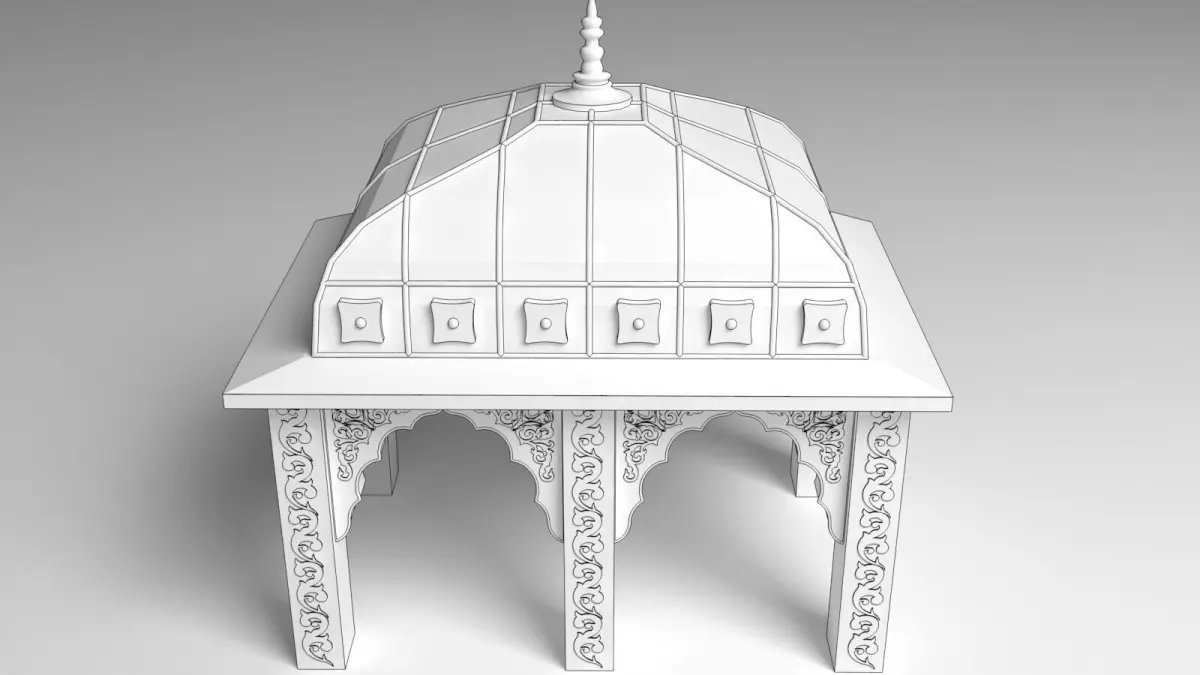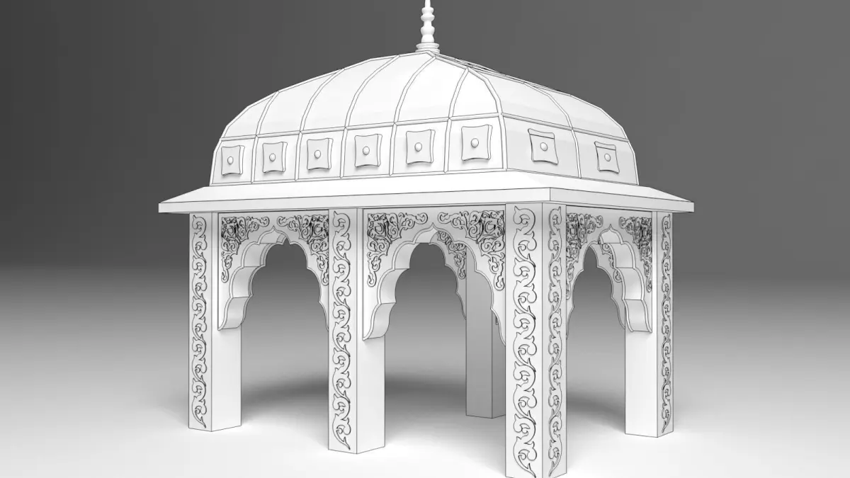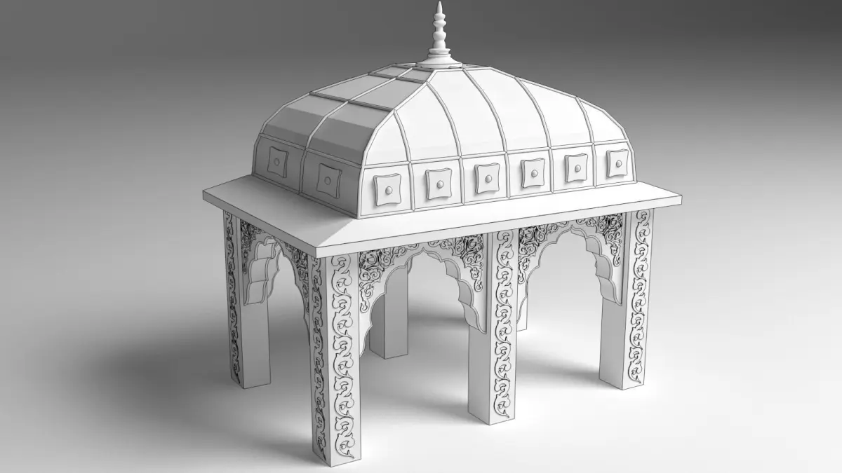 This Indian Palace Dome 3D model showcases the intricate and regal architectural style commonly found in the grand palaces of India, particularly during the Mughal, Rajput, and Maratha empires. The dome serves as a striking focal point in Indian palaces, embodying both artistic beauty and structural grandeur. It is a symbol of royal magnificence, often seen atop palace halls, courtyards, and temples.
