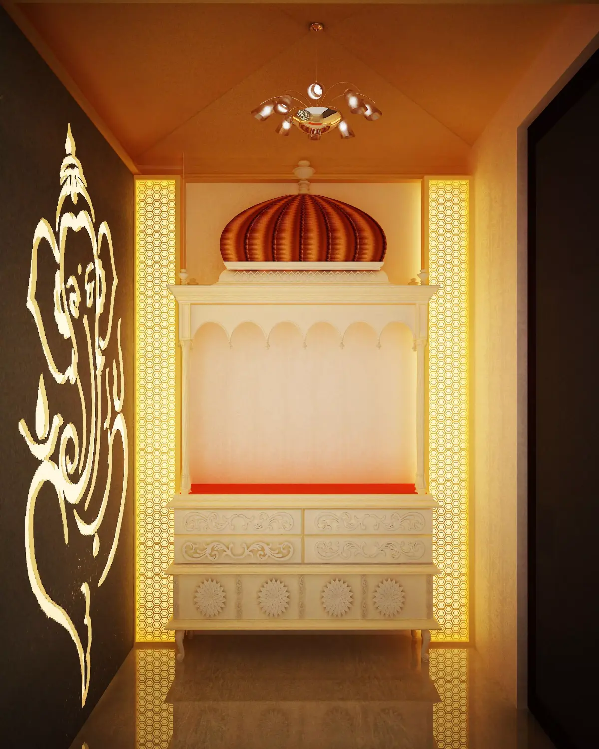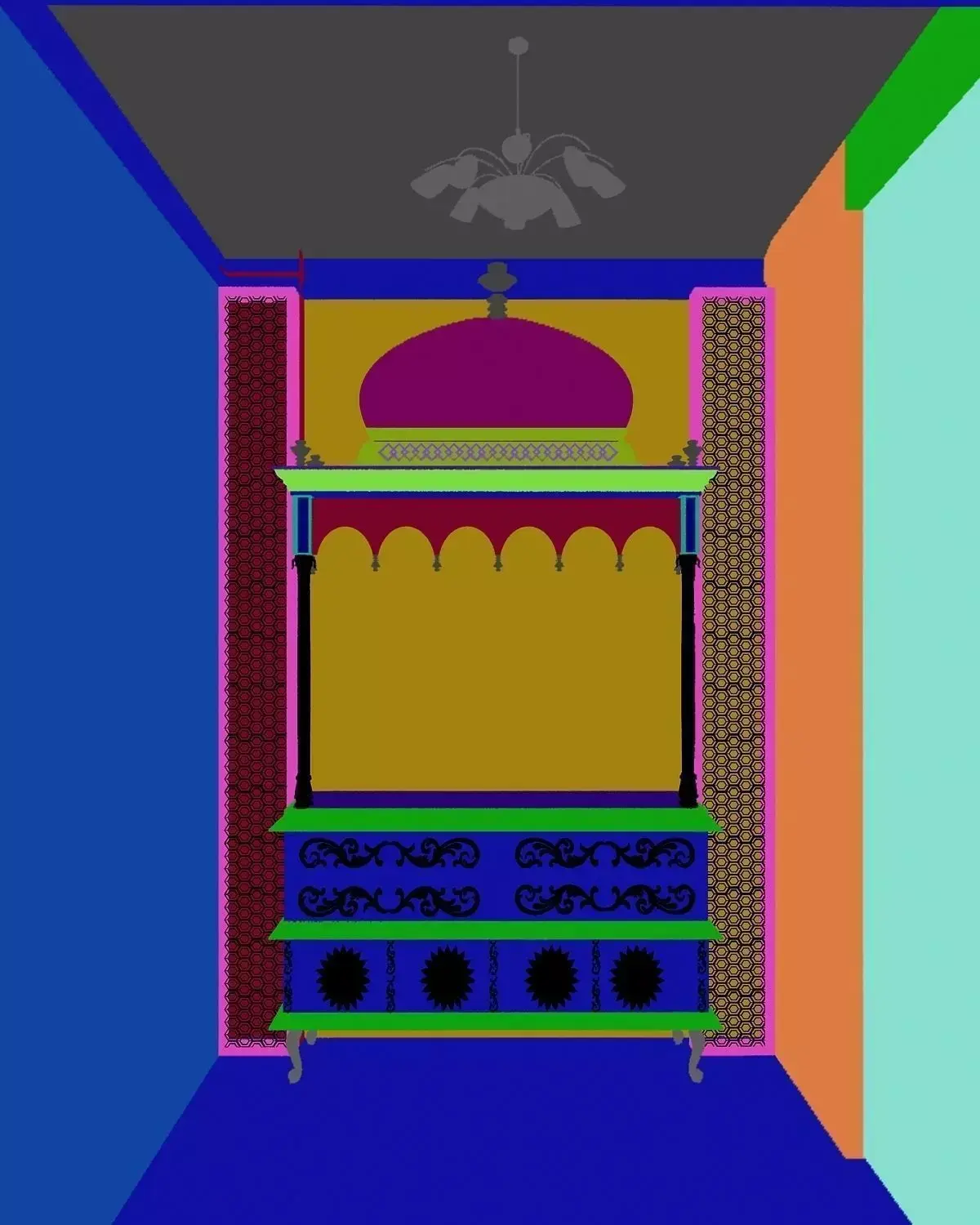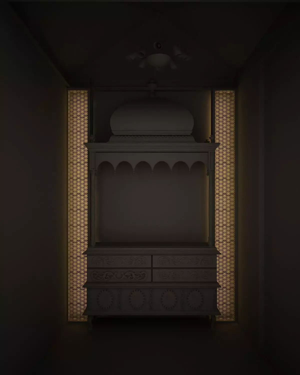 Indian Style pooja room with highly detailed and using sweep scripts to made a lofts. And I attached sweep script, please download it. Ready to render and can easily editable.