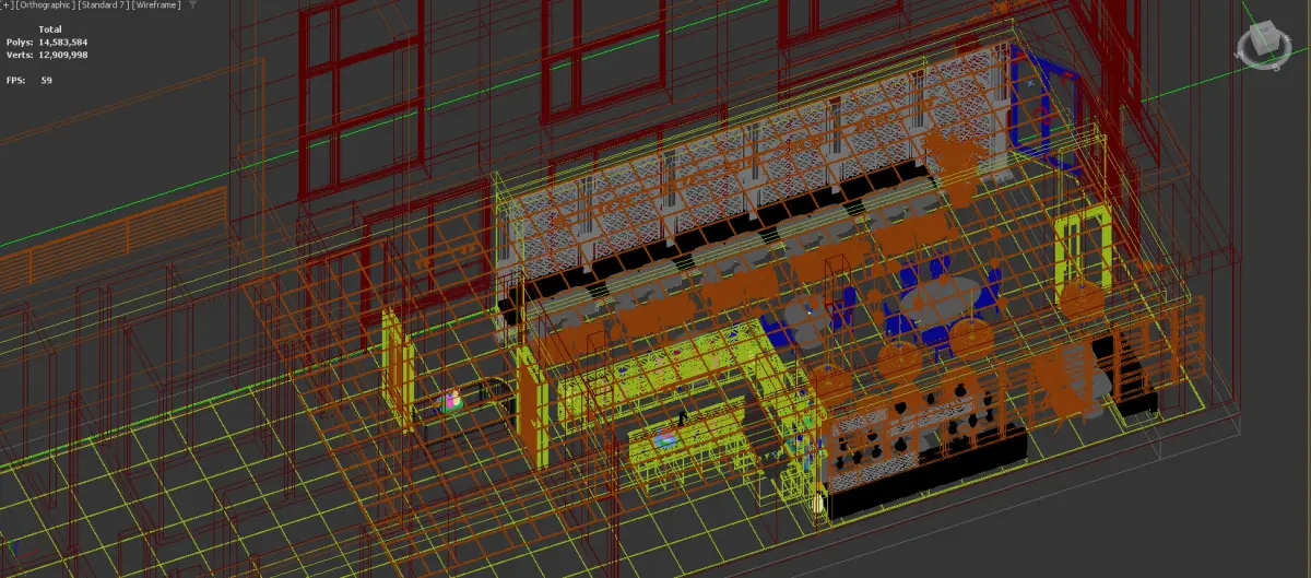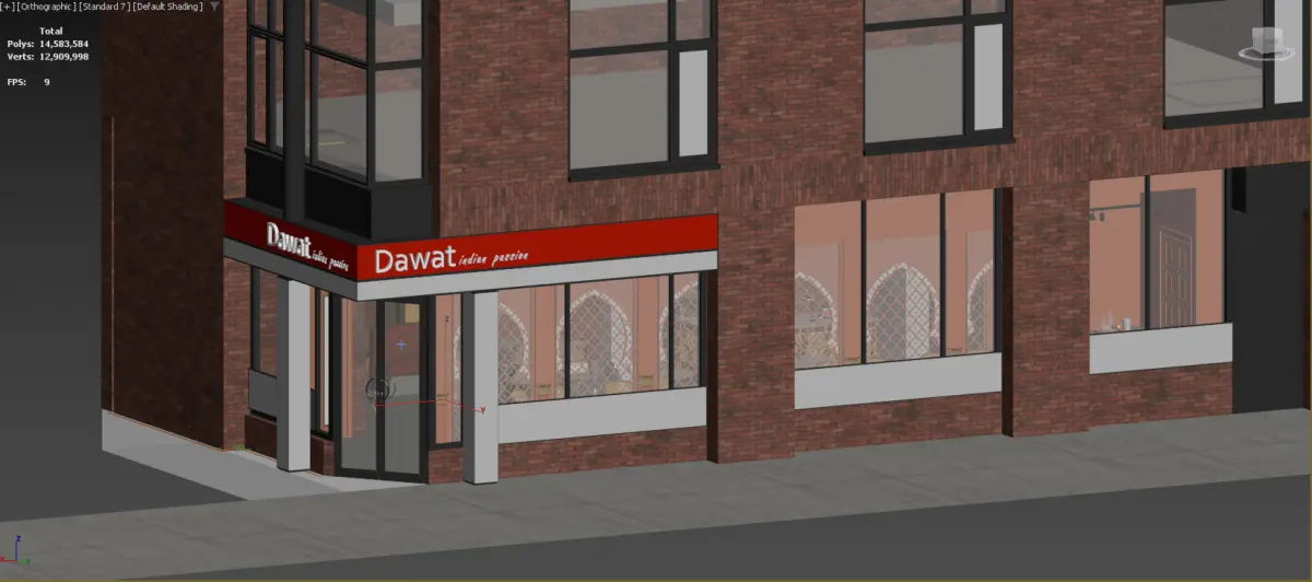 This 3D model set features a detailed and stylish Indian restaurant, showcasing both interior and exterior designs with high-quality materials, lighting, and decor — ideal for architectural visualization, animation, or game environments.