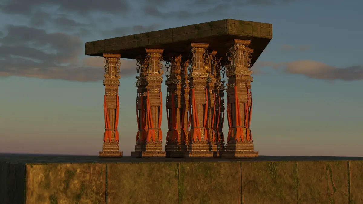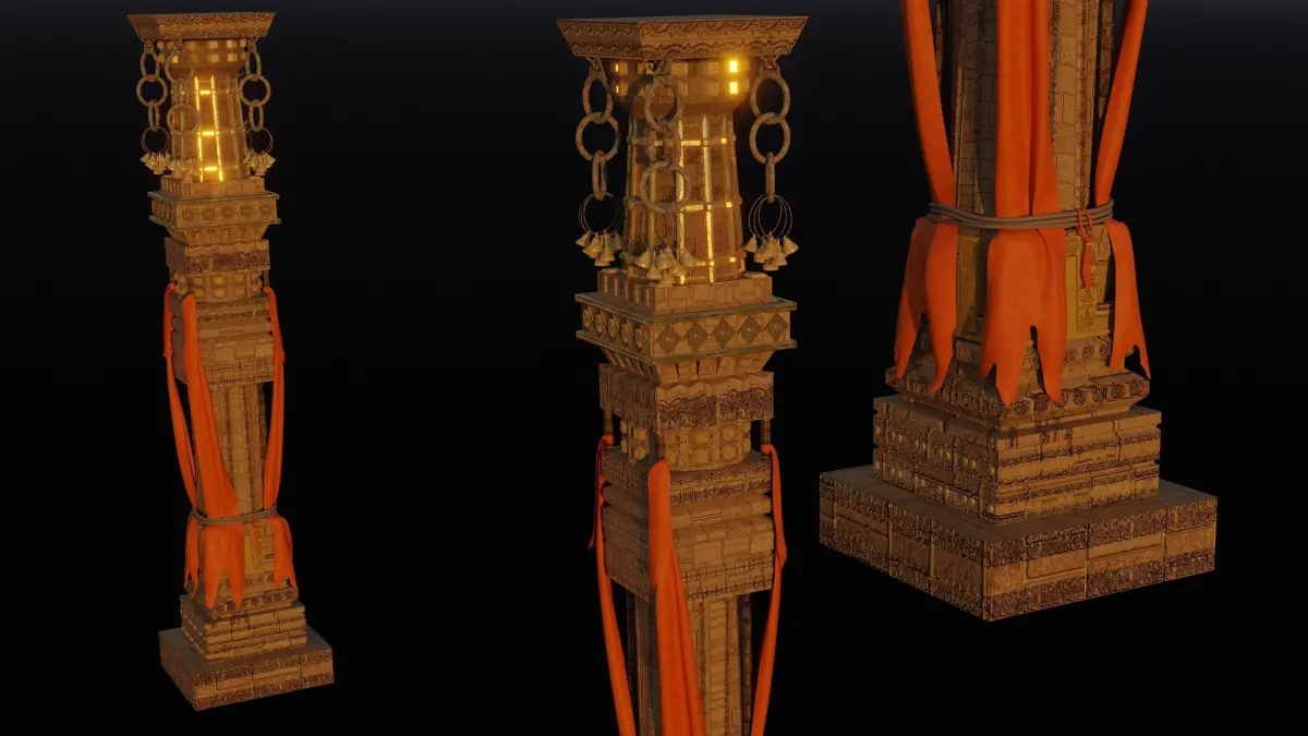 hey everyone this is an Indian style stone Pillar with a good and optimize topology which you can easily trust upon on your renders , to get no shading issue and weird shadows error. i have created this using various reference material all over internet hope you like the model and its textures we have a very detailed set of 4k high res texture with Indian style details all over it. the pillar is decorated with gold accent and gold pins all over place with 2 pair of metal bells at the top. hope you find this information useful thankyou