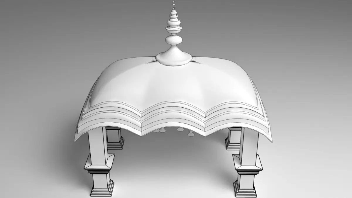 This 3D model represents a traditional Vedi, a vital part of ancient Indian rituals and religious ceremonies. The Vedi is typically a rectangular or square-shaped raised platform made of stone, wood, or other sacred materials. It is designed for performing Yajnas, where offerings are made into a fire, accompanied by chanting Vedic mantras.