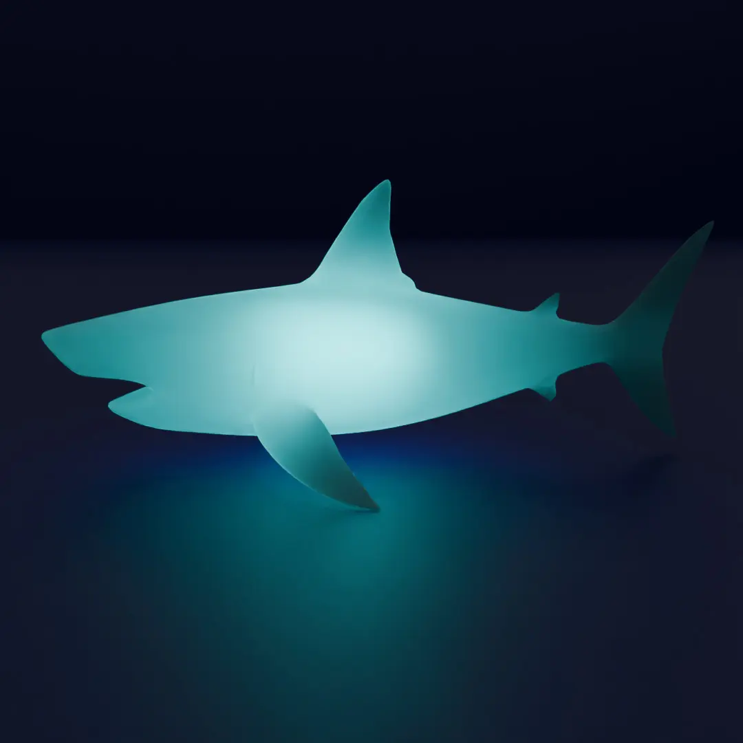 Beautiful and fantastic 3D model of indirect lighting featuring large marine creatures of dolphins, sharks, and whales, created in Blender! The gently glowing silhouettes create a mysterious atmosphere of the ocean, transforming the space into a relaxing and healing environment.