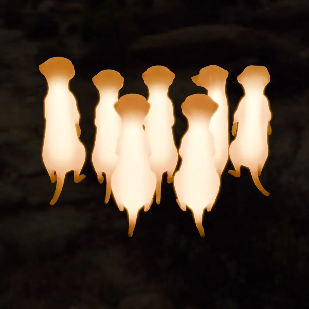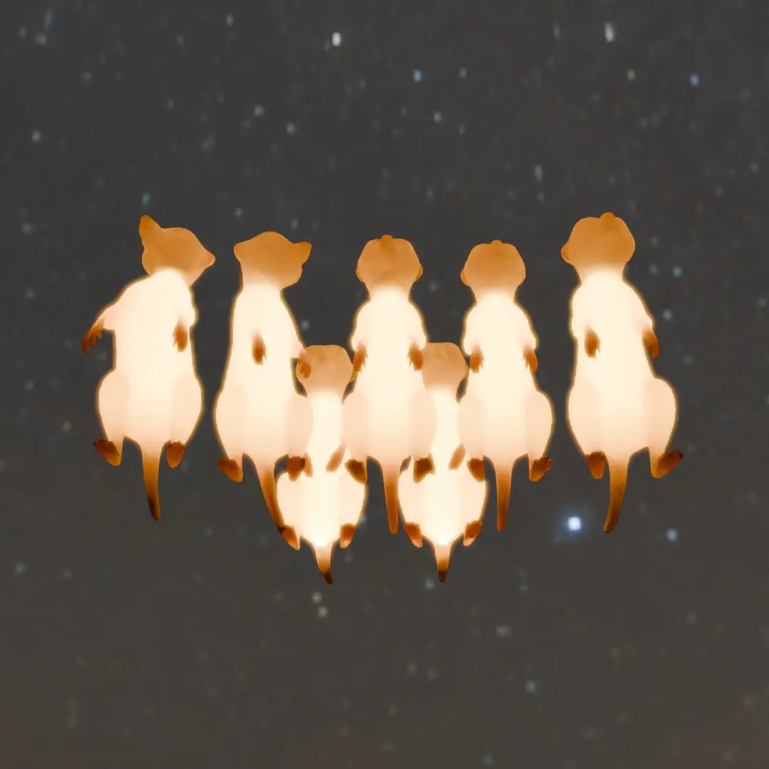 The cute little meerkats standing guard in the desert.Carefully modeled in Blender, “Indirect Lighting of Meerkats” is a unique 3D interior item that adds a sense of fun and healing to your life.