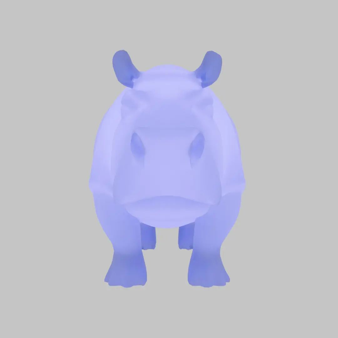 This is a 3D model of a unique indirect light featuring a hippopotamus, whose chubby form is adorable.The design of the hippopotamus' body with a hint of light oozing out from it has an outstanding presence as an interior decoration. The somewhat laid-back appearance gently illuminates the room.