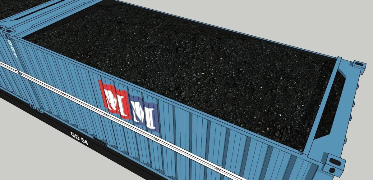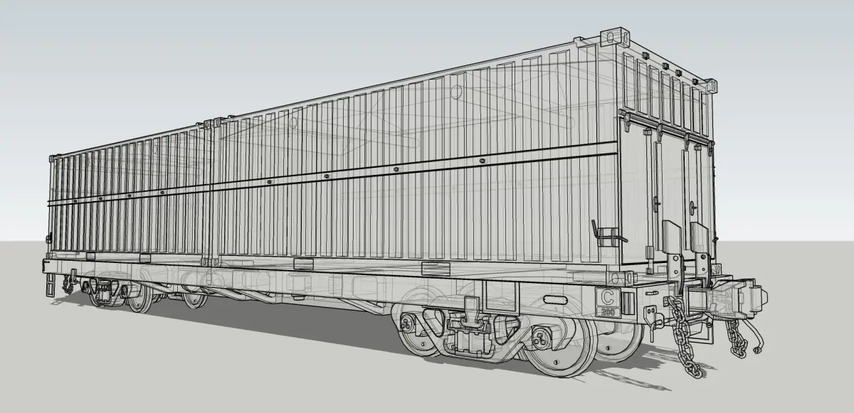 Bogie (Type Barber), coupler (Type Rotary) & chain are included with the mesh file (both .skp and .3ds)Coal-load Container also included as a bonus for measuring/placing container with correct position.