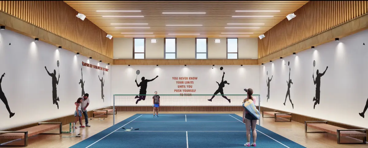 Convertible Indoor Badminton & Tennis Court 3D Model – Modern Interior with Luxury Wall Paneling
