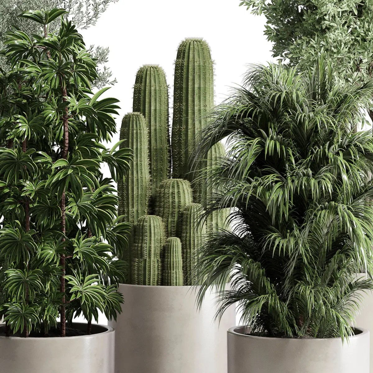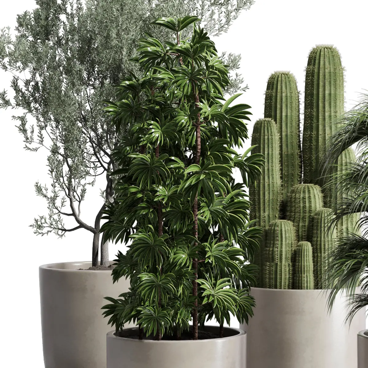 indoor plant 190 pot cactus olive palm concrete dirt vase 3D model