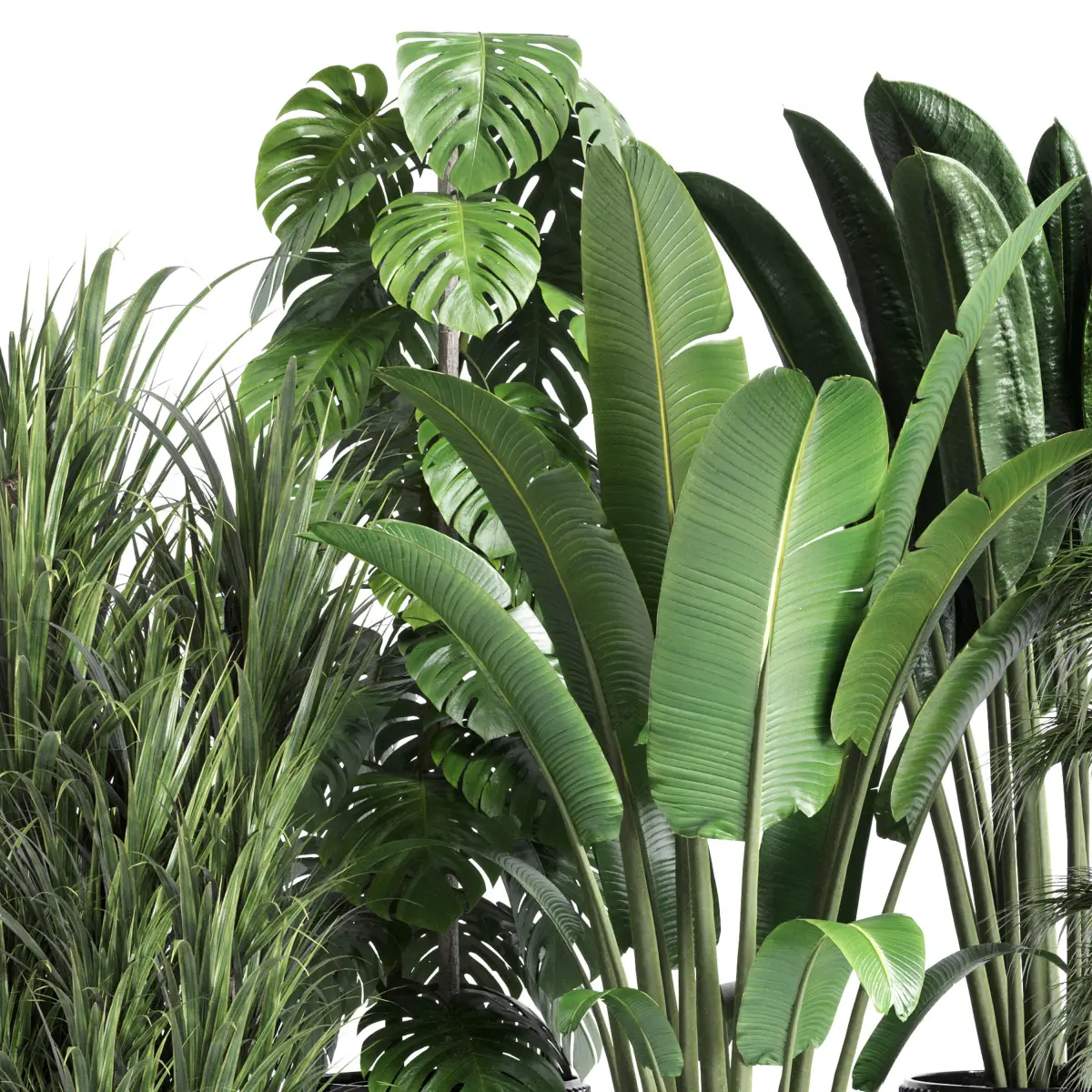indoor plant 201 ravenala ficus rubbery monstera concrete dirt Low-poly 3D model