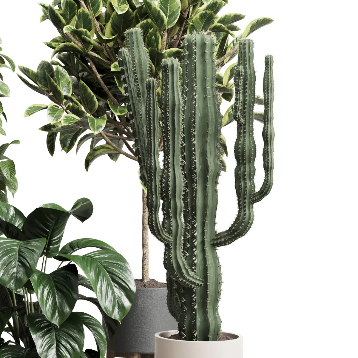 HomeCatalog indoor plant 216 ficus rubbery bush cactus concrete vase 3D model