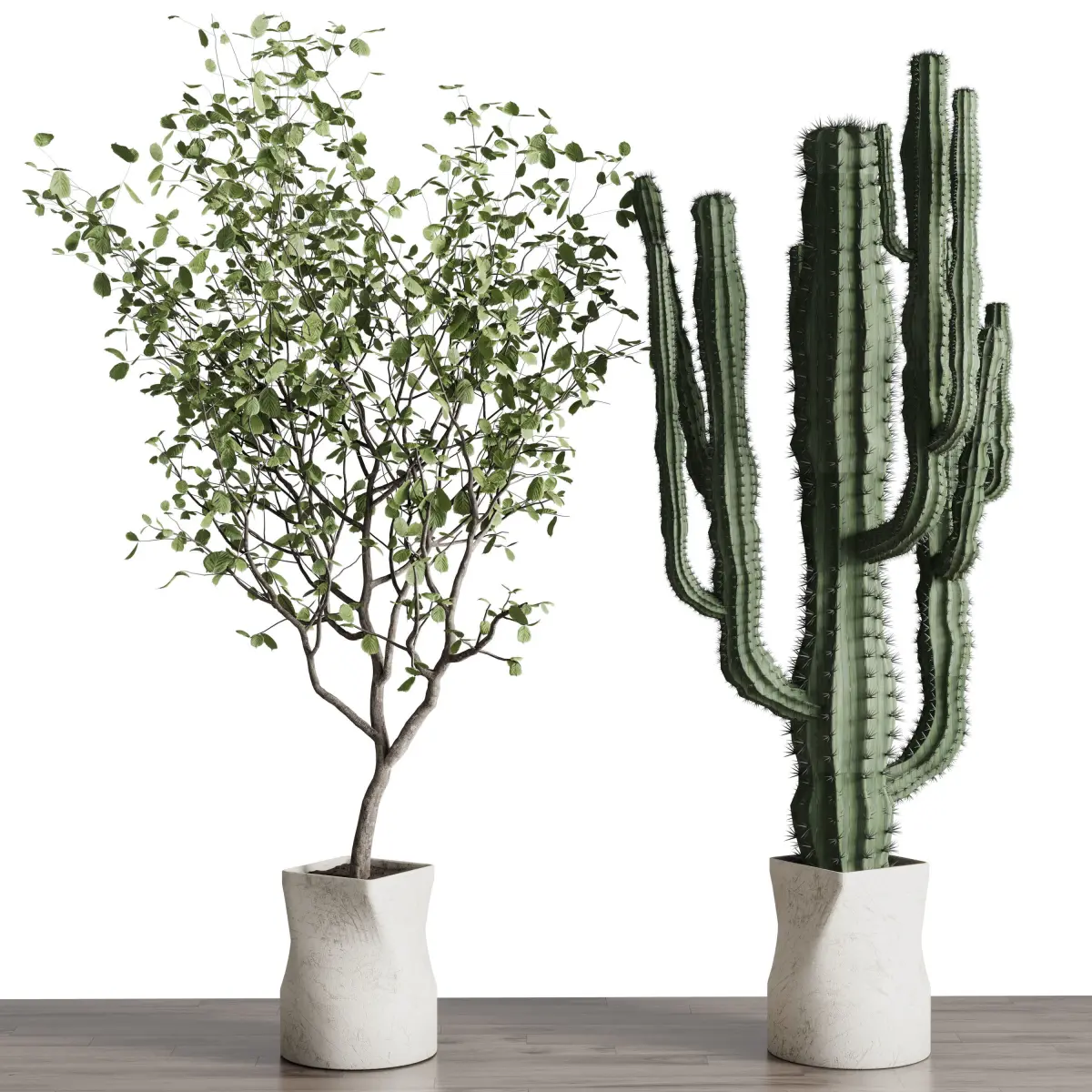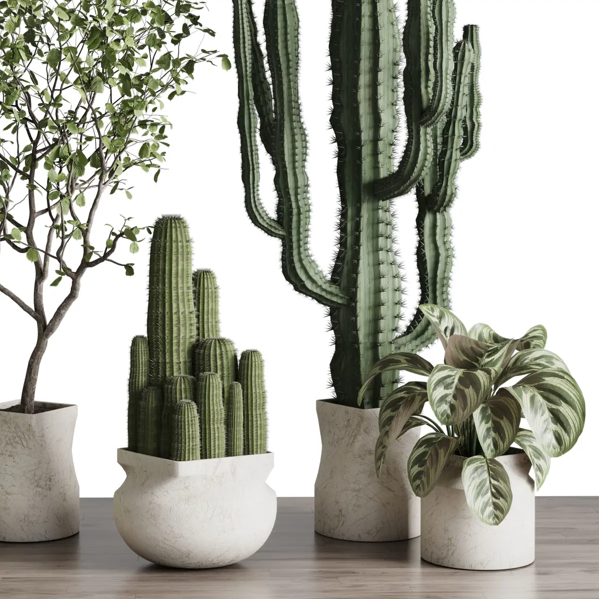 Indoor plant 458 pot plant cactus tree bush in old concrete vase