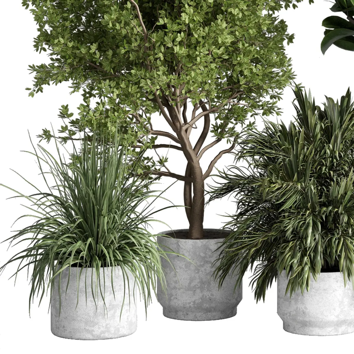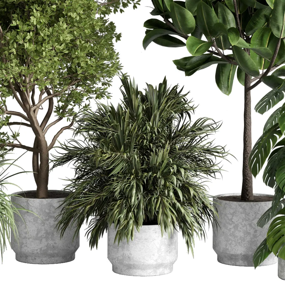 indoor plant 481 pot plant tree ficus rubbery monstera palm concrete dirt vase