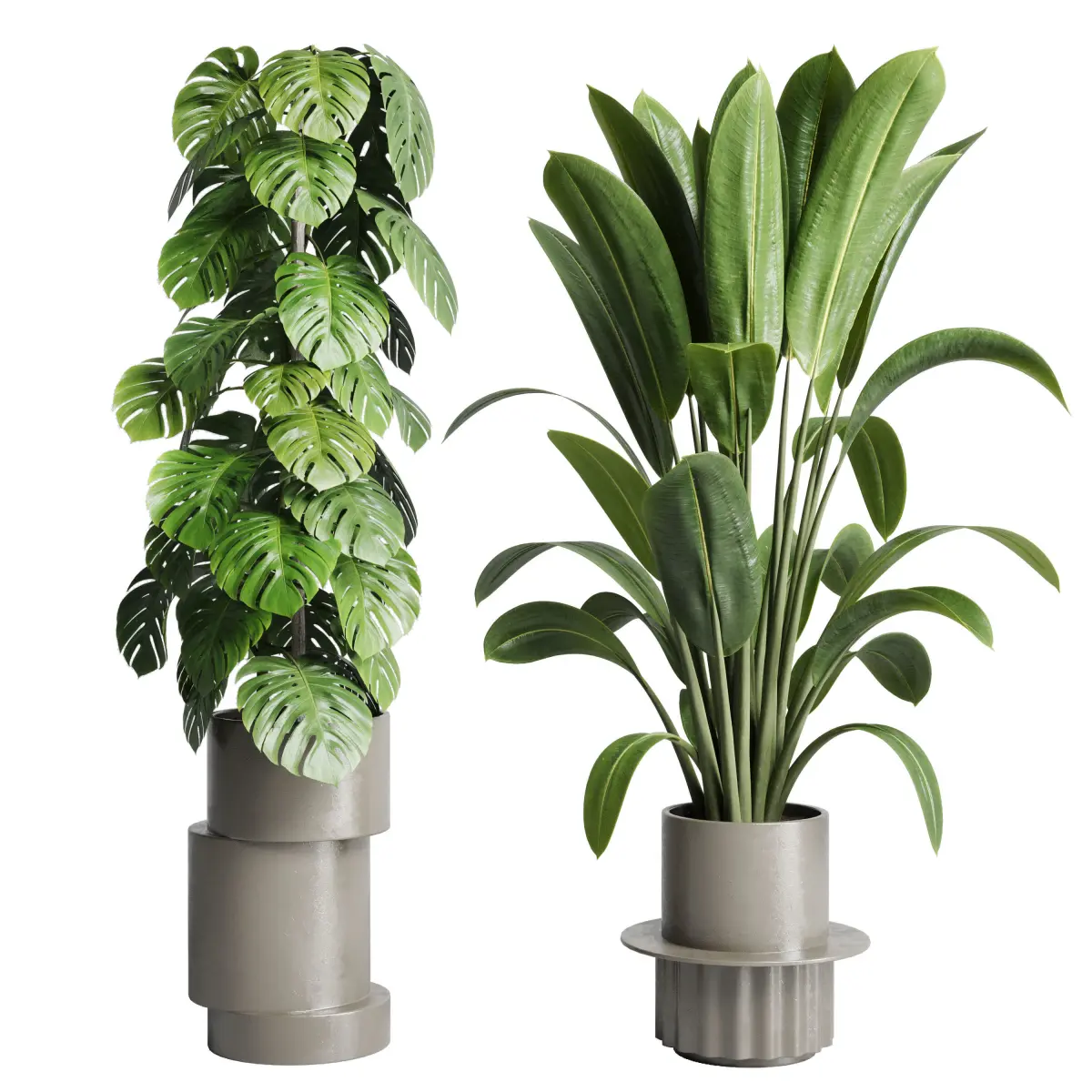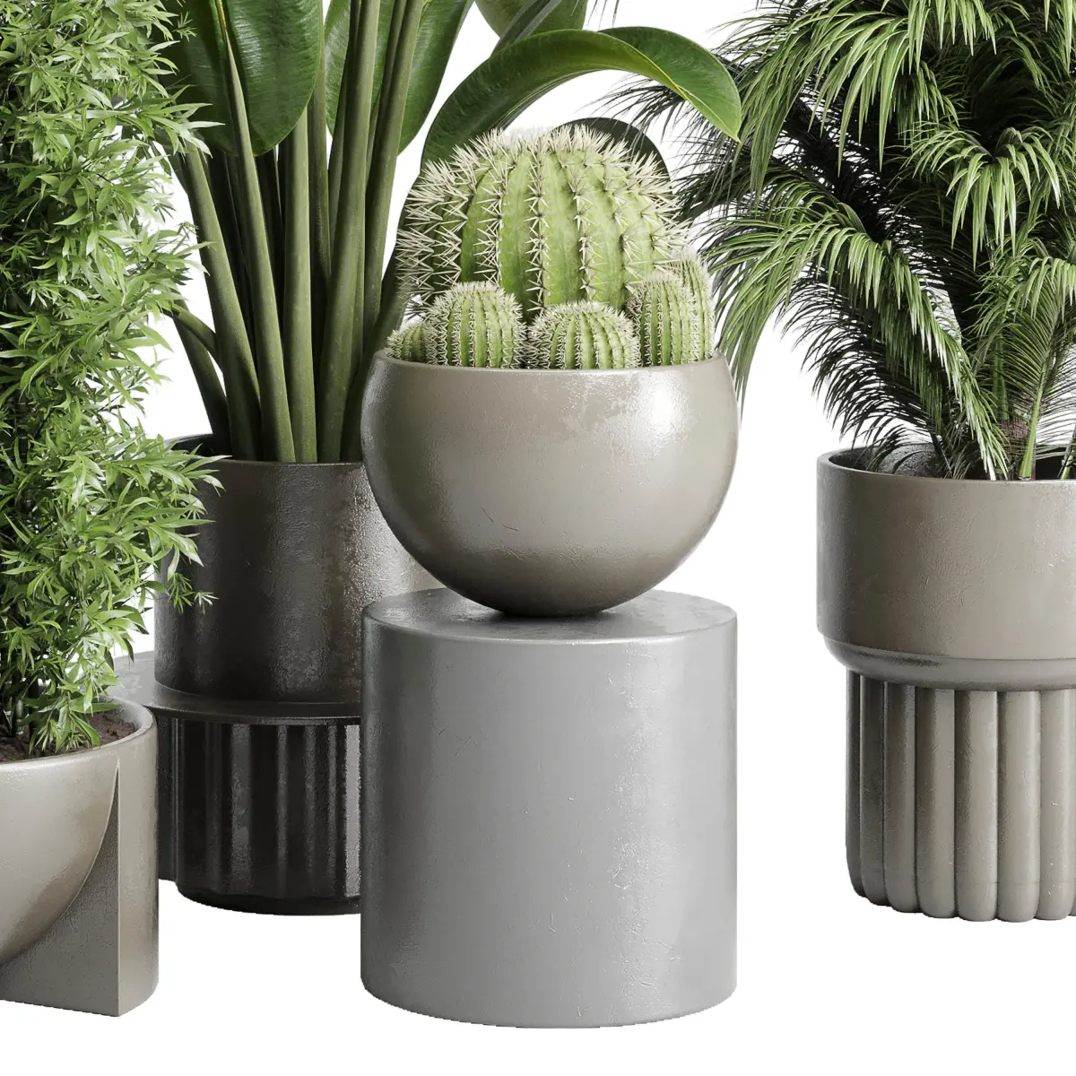 indoor plant cactus ficus rubbery monstera palm concrete dirt 3D model