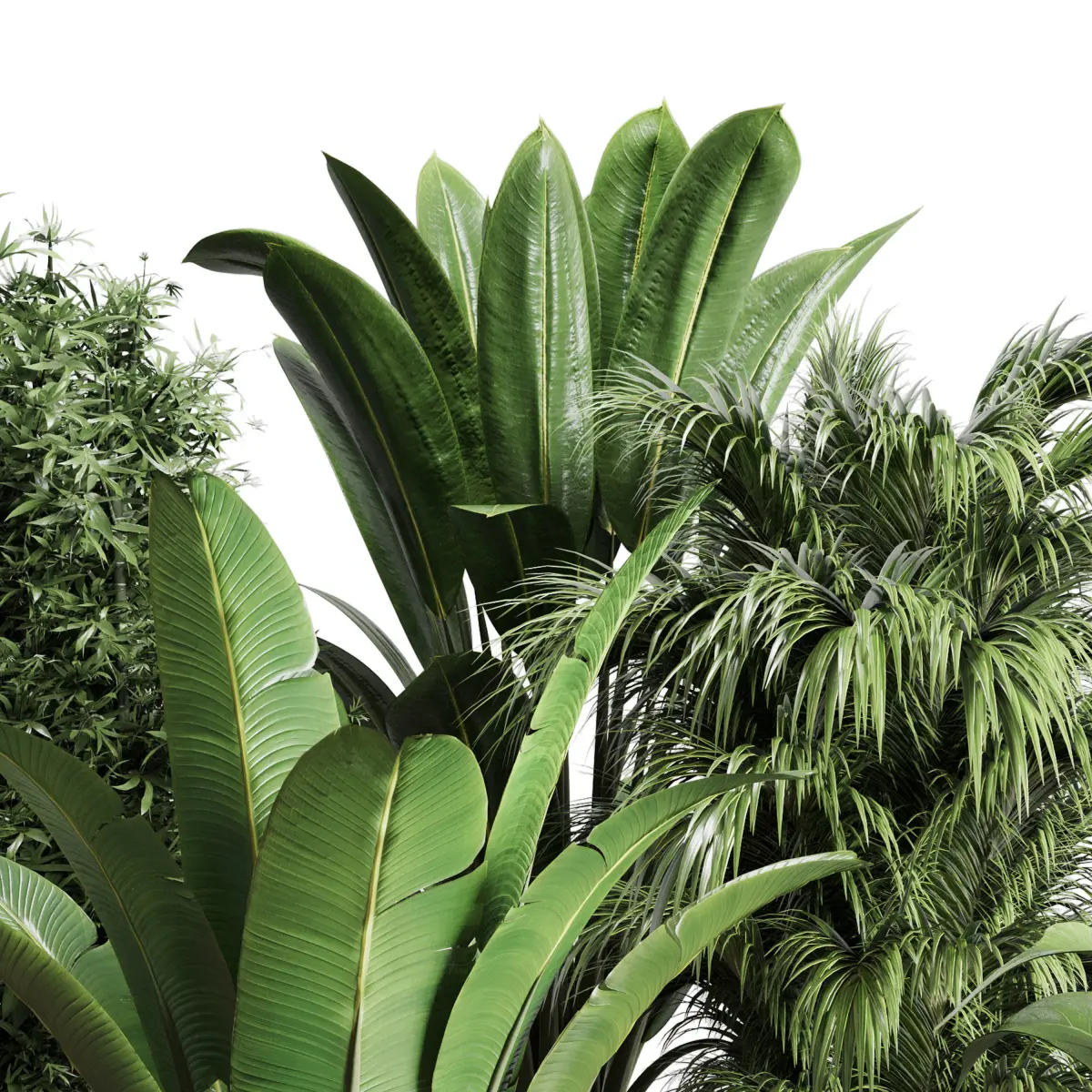 HomeCatalogindoor plant ficus ravenala of earthenware and patternd vases 3D model