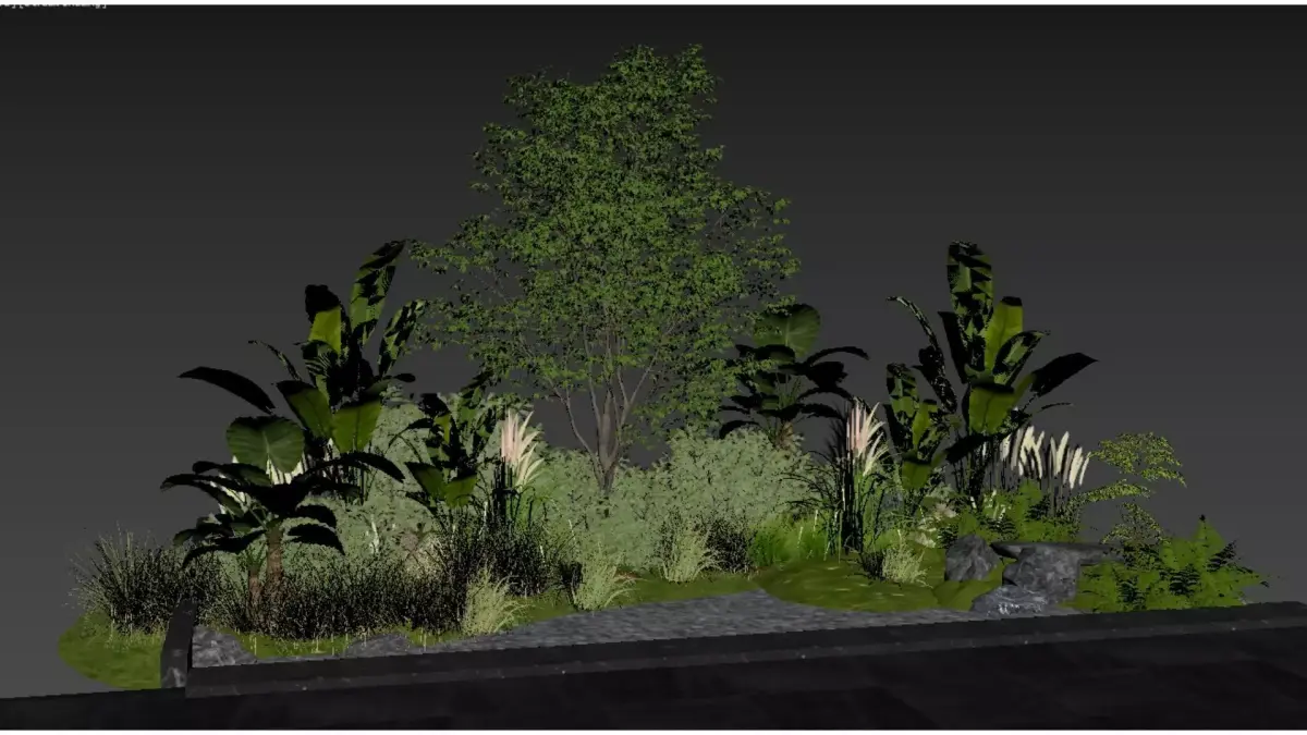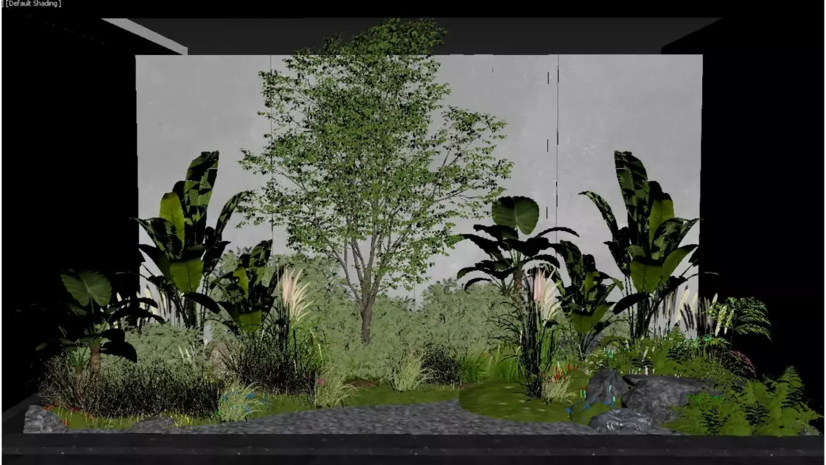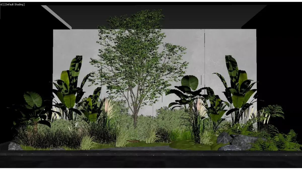 This is a modern minimalist-style indoor greenery landscape. It uses cool-toned gray and white walls as the base, paired with natural lighting from skylights. Through multi-layered greenery including arbors, banana leaves, and ferns (including artificial plants), it creates a mini indoor rainforest atmosphere. It combines a sense of relaxation with spatial style, and is suitable for landscape decoration in public spaces such as shopping malls and office areas, as well as high-end residences