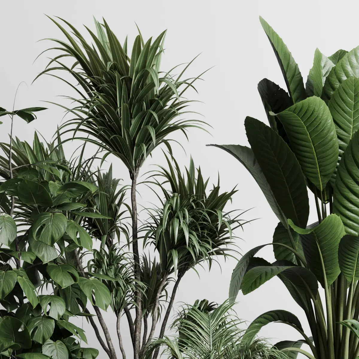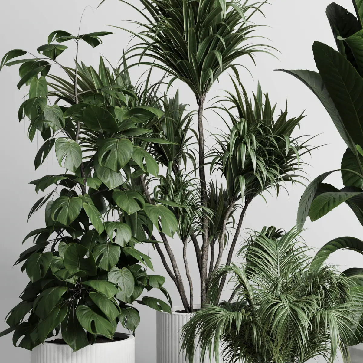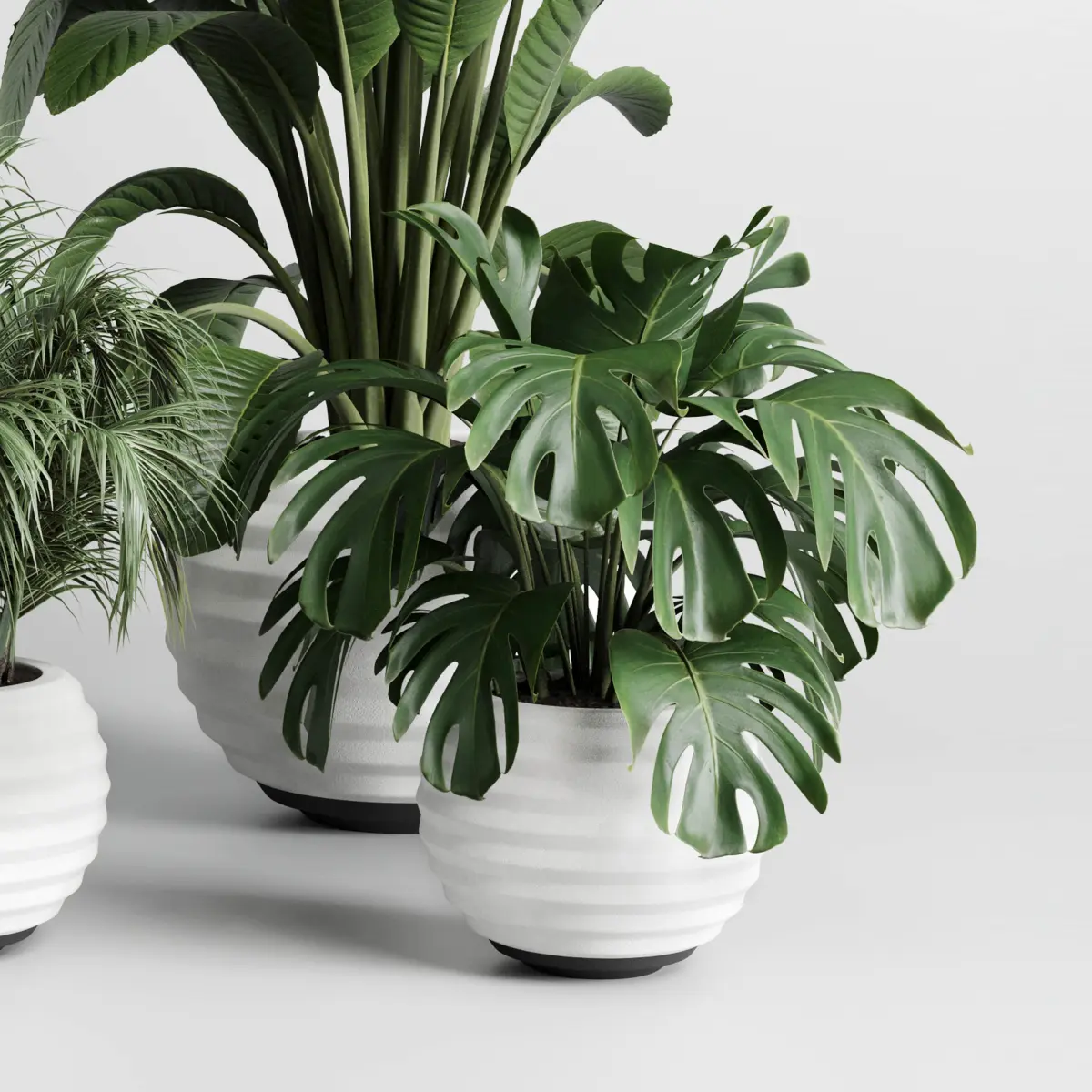 indoor plant plam ficus rubbery monstera concrete vase 3D model