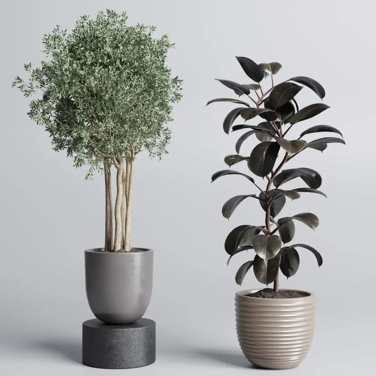 Collection indoor plant 178 pot plant ficus rubbery tre concrete dirt vase.