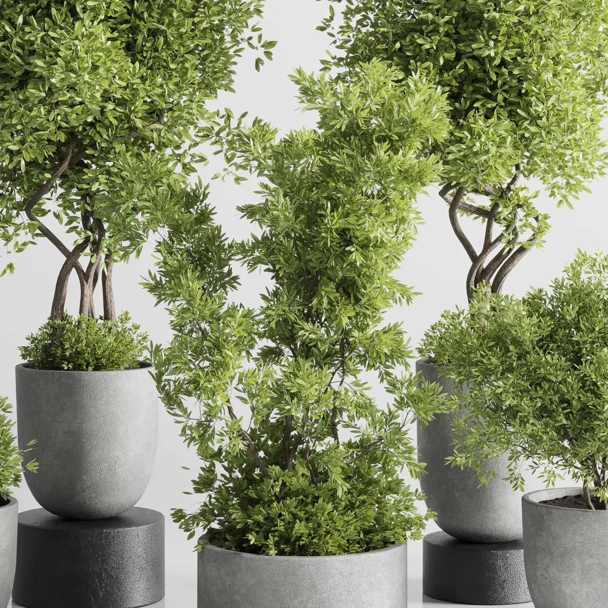 Indoor plant set 303 concrete vase plant tree bush potFile 3dmax 2015 corona_vrayexport file obj