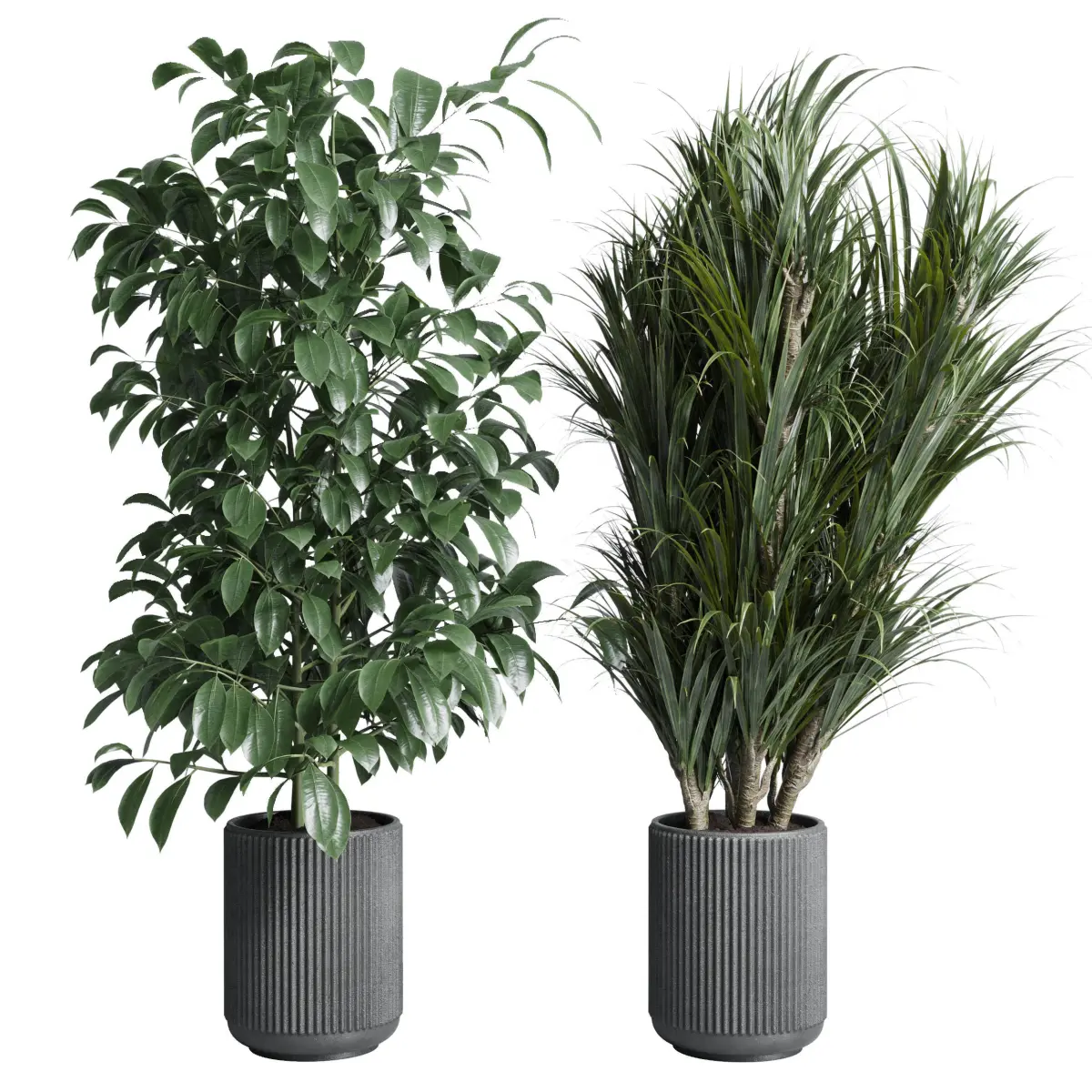 indoor plant set 308 pot palm ficus rubbery monstera concrete dirt vase