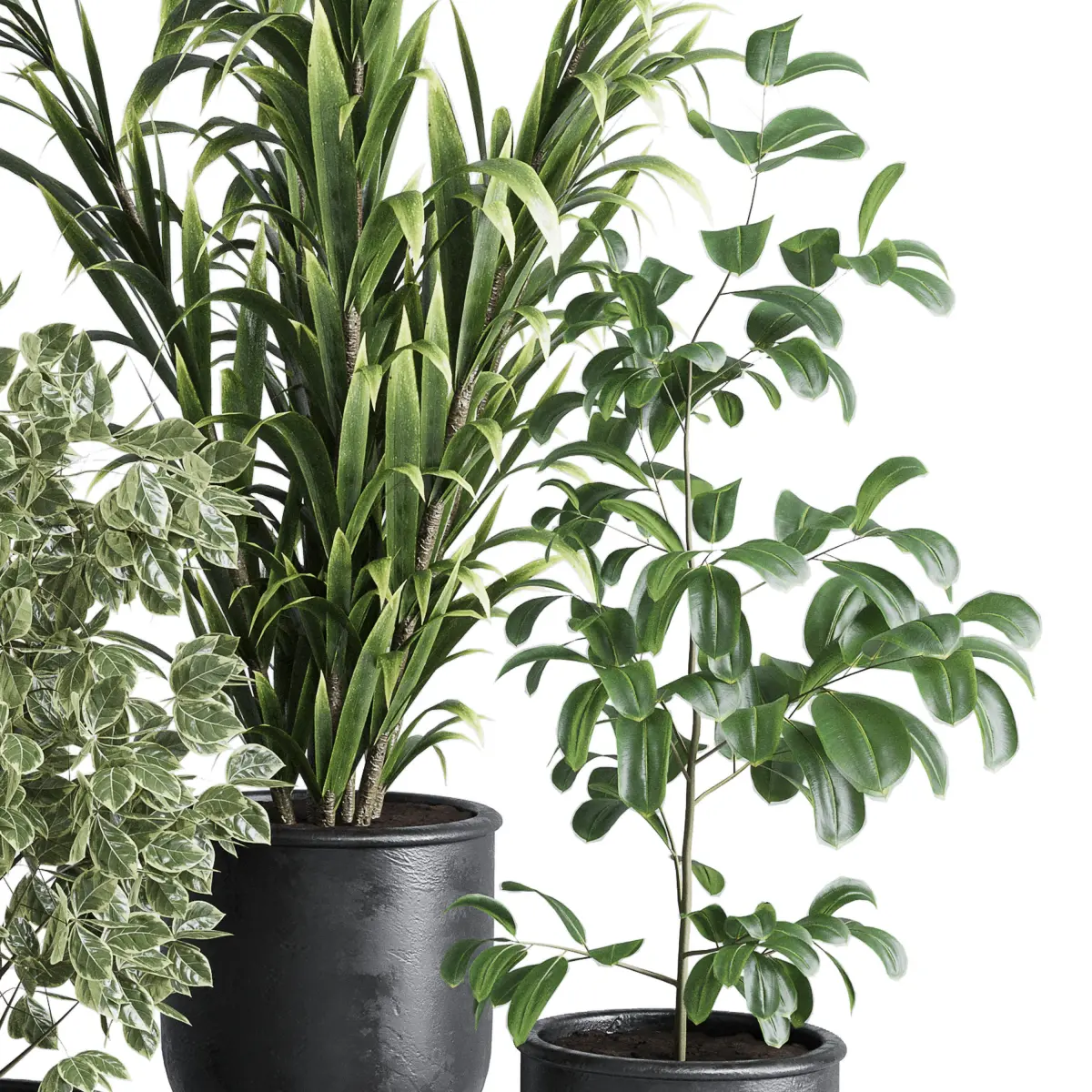 indoor plant set 338 ficus rubbery palm fern bush concrete dirty vaseFile 3dmax 2015 vray_corona
