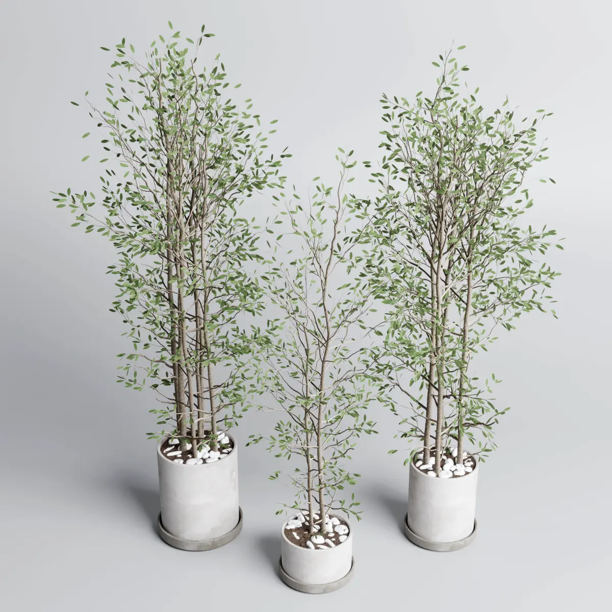 indoor plant set 378 ravenala ficus rubbery monstera palm concrete pot