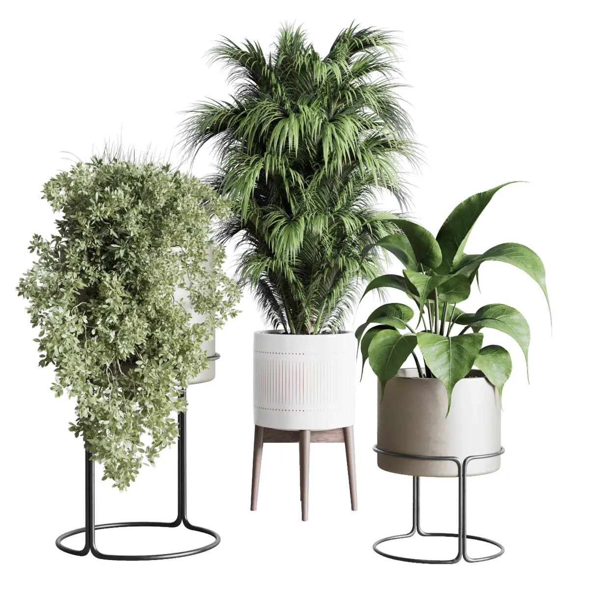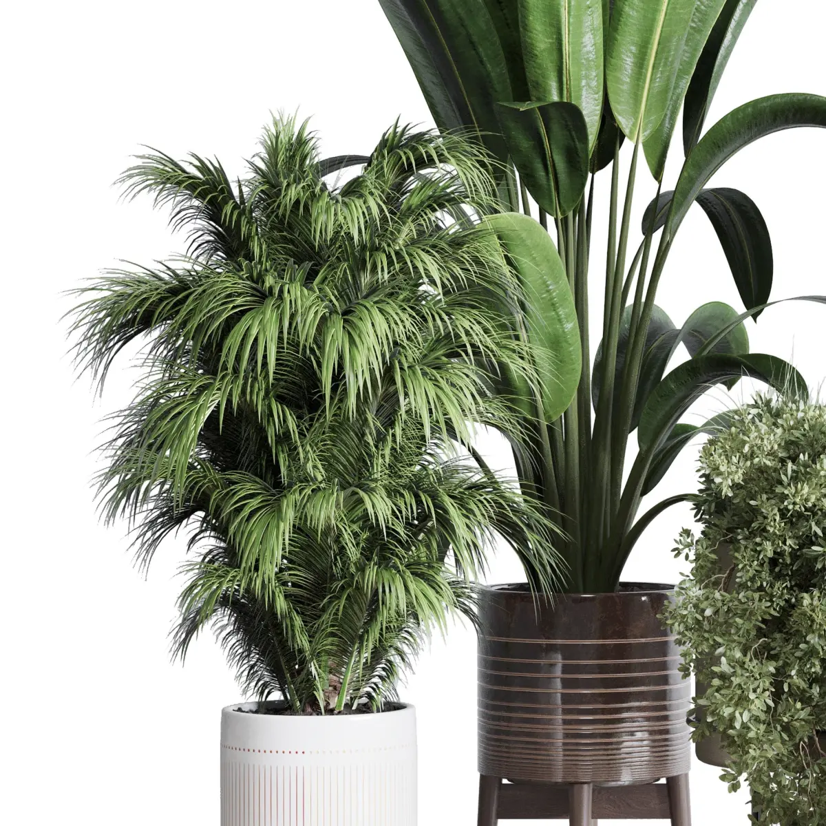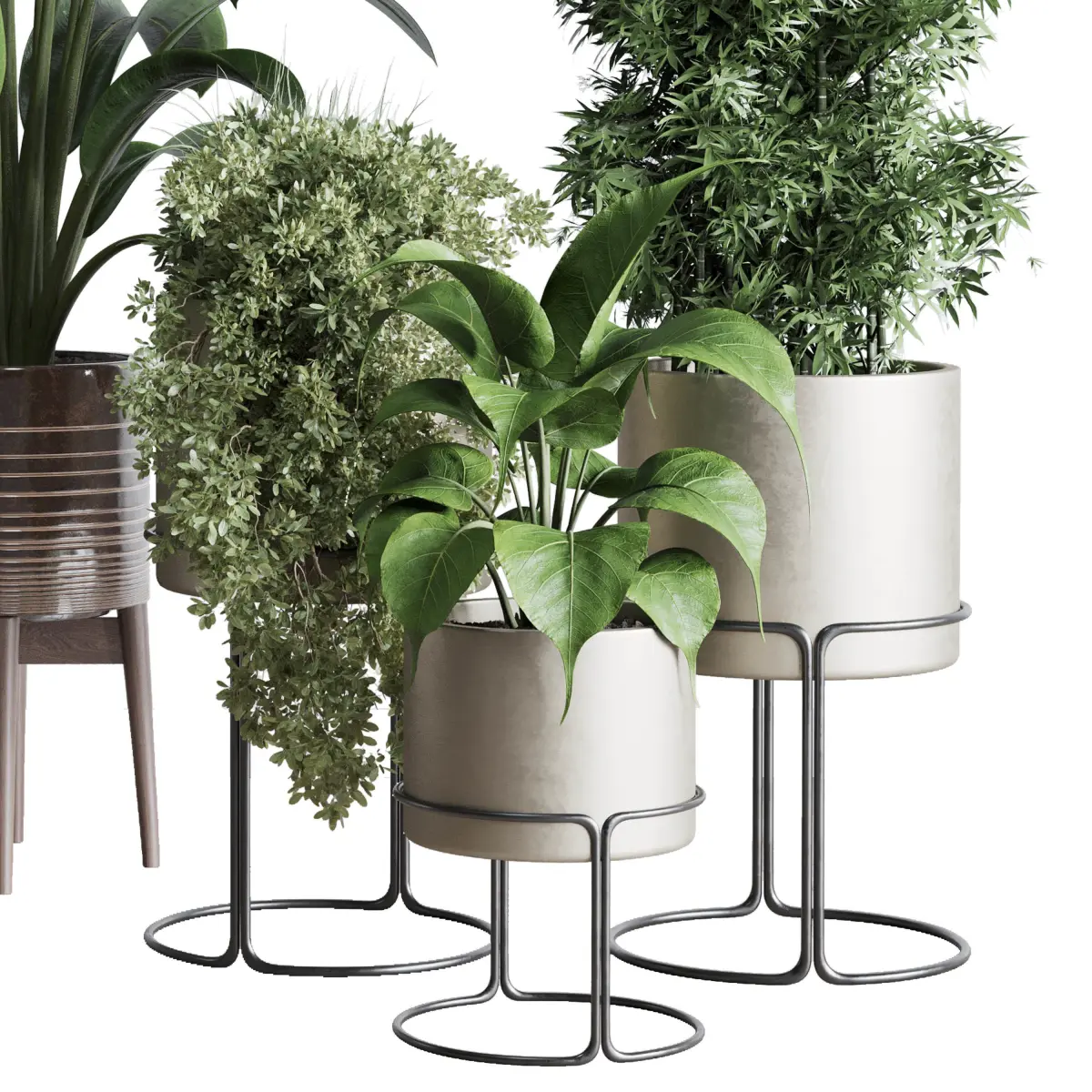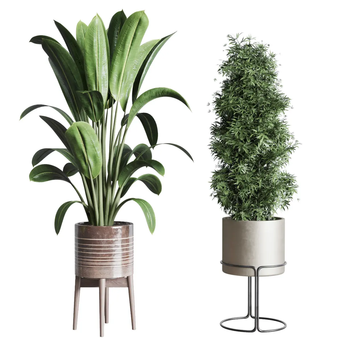 indoor plant set ficus rubbery of earthenware and patternd 3D model
