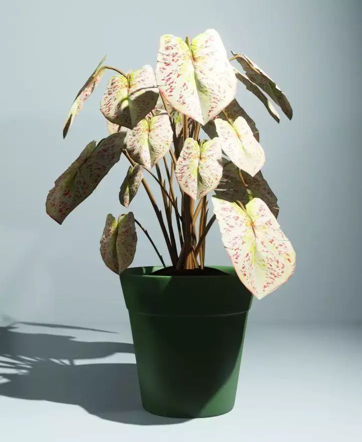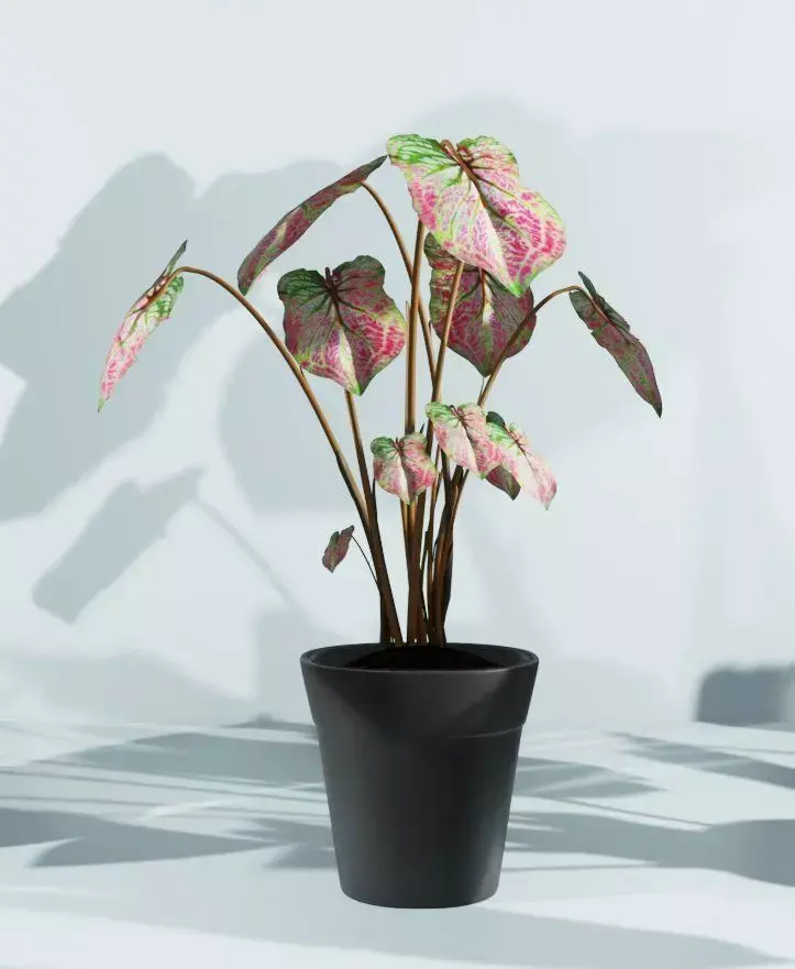 It is an indoor plant caladium modeled in blender 2.92, . textures included, as you can see in preview images, is a low poly model ,having screen space refraction ; all the file formats has archived ,of zip format , i've used area lights for the light set up...to every object and group or collection I've put individual name so it would be easy for you to find objects or collection without any problem...so if you like it you can buy ...and since you bought this.. it will be yours ...so that you can use it in your project or for any personal use ,it is 100% similar as shown in images